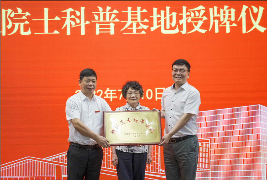 会上举行了省级院士科普基地授牌仪式,温州市科协党组书记、主席林建波向温州市龙湾区永兴第一小学校长王建秋授牌,张淑仪院士见证。