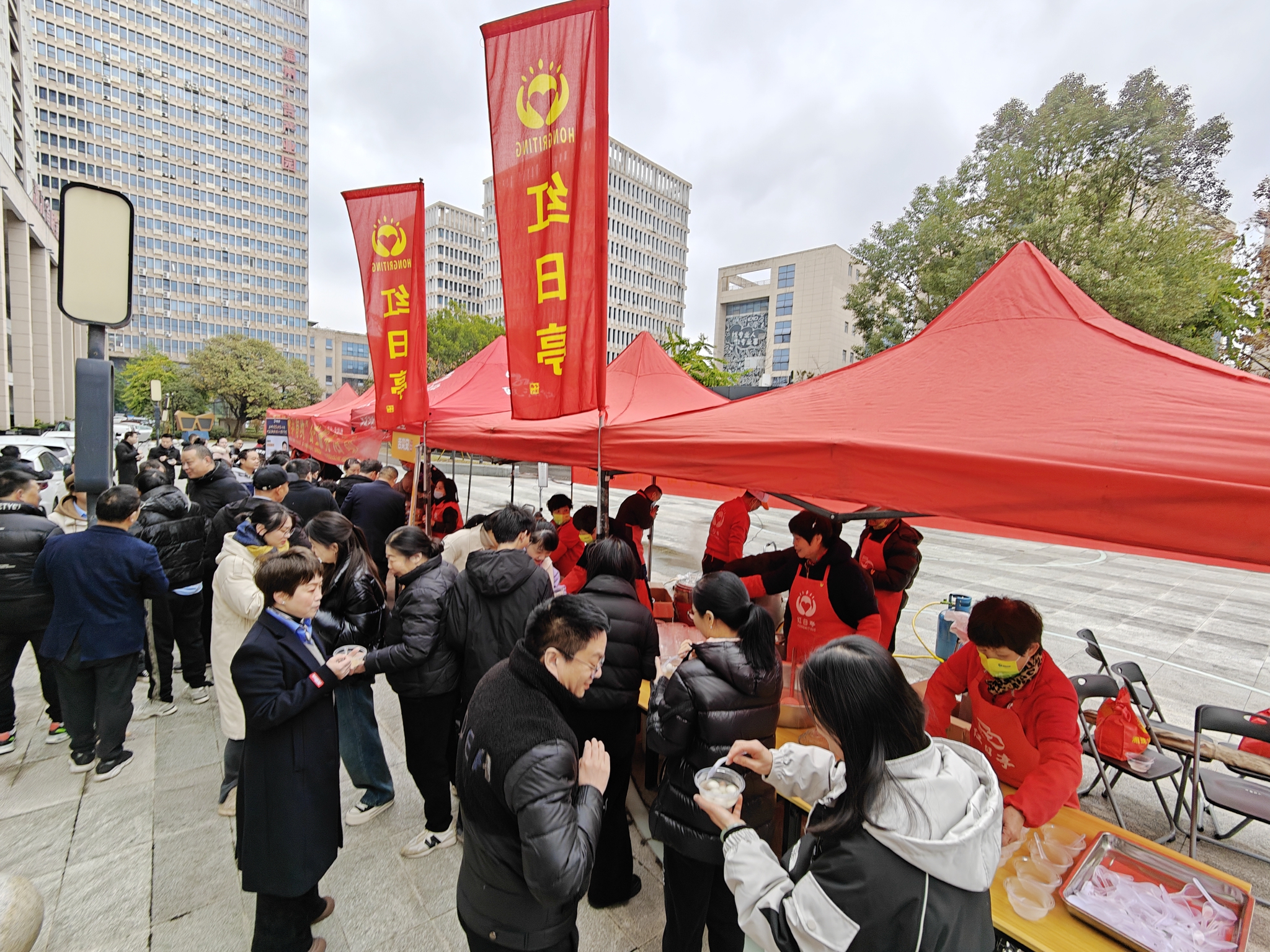 活动恰逢冬至节前夕,温州红日亭义工队、瓯海乐慈义工队和温州舌尖安义工队现场烧制并分发麻糍、汤圆、猪油糕等佳节美食。温州市公安局交管局四大队三中队的交警也来到现场向司机师傅们科普冬季行车安全知识。温州尚善口腔和温州明乐眼科医院则设置摊位为网约车司机进行初步健康检查。红色的帐篷下热气不断升腾,司机师傅们纷纷笑着品尝美食并合影留念。从事网约车行业已有6年的叶师傅说:“今天的活动真好,我平时开车久了眼睛容易疲劳,今天在现场就能向医生咨询,义工们还煮了许多汤圆,我想这就是过节的味道!”