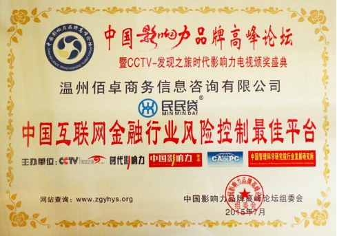 (民民贷获得CCTV颁发的中国互联网金融风控最佳平台)