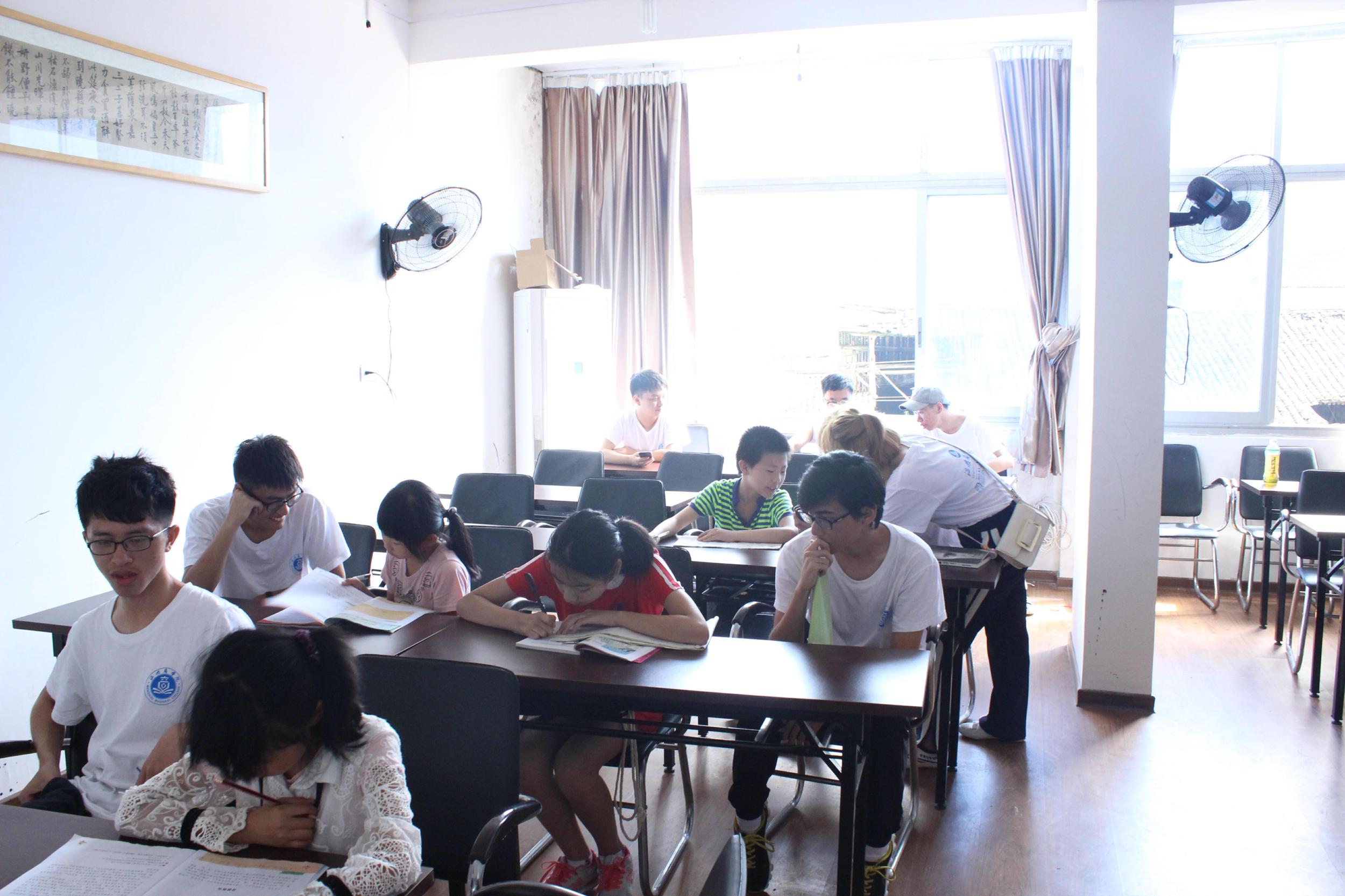 实践队与公阳乡文化礼堂合作,为公阳乡小学生开办了暑期兴趣班,家教组的队员早上指导小学生暑期作业练习,下午进行美术、音乐、体育等兴趣培养。家教组的另一个任务是队员们将成为文成公阳乡叶式太极开班仪式的志愿者,并准备开场节目。