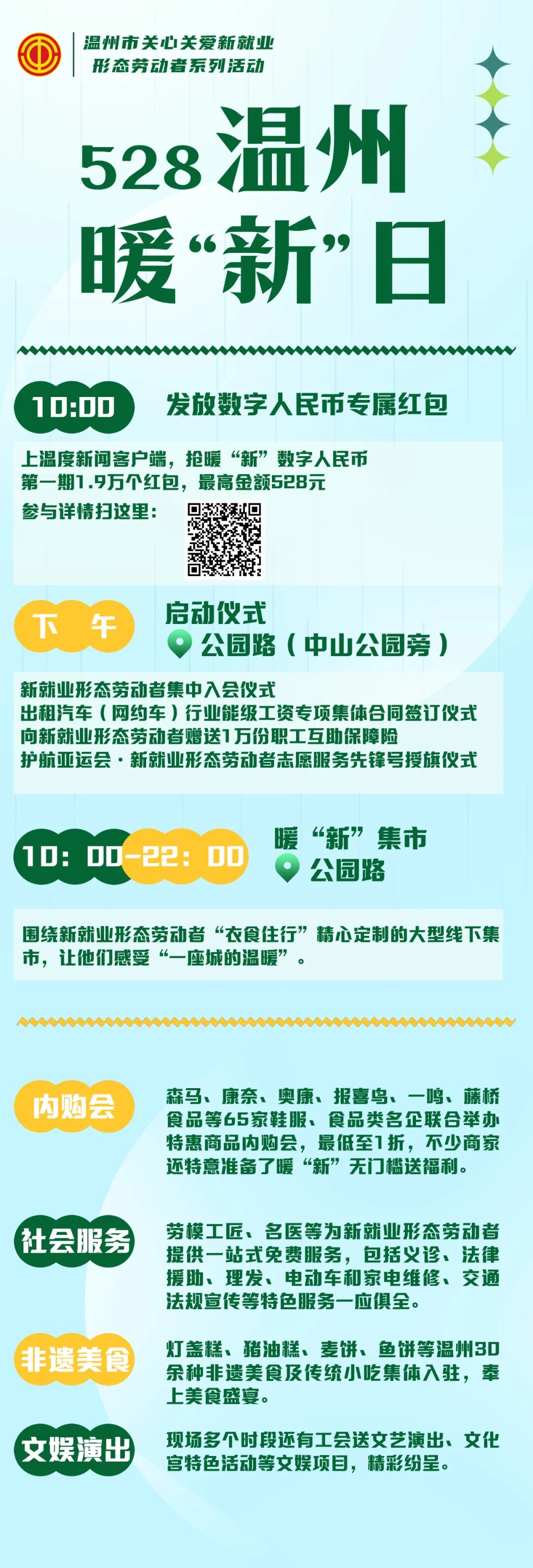5月28日,我市还将开展暖“新”日活动,届时将开展暖“新”数字人民币红包发放、暖“新”集市等服务活动。