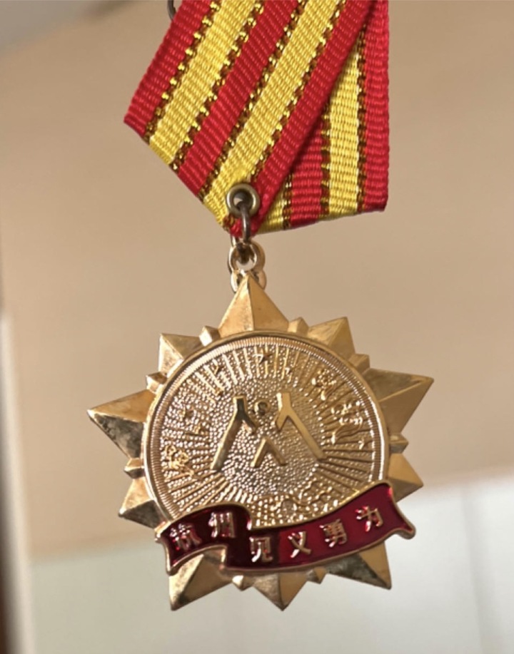 6月25日,在浙江中医药大学附属第二医院(浙江新华医院)的病房里,杭州市公安局党委委员、副局长秦文及杭州市人社局的相关负责人,代表杭州市人民政府为彭清林颁发二等功荣誉证书,并颁发奖章。