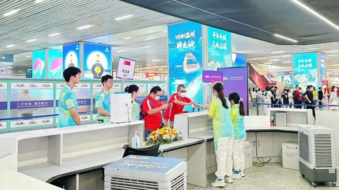 运动员团队抵达过程中,机场工作人员和“小青荷”们手持欢迎牌,面带微笑,向代表团成员致以热烈的欢迎和问候。同时,协助办理入境手续、行李搬运、交通安排,以及介绍温州气候、交通、比赛场馆等信息,以热情、耐心和责任心为代表团成员提供优质服务,展现温州热情好客的良好形象。