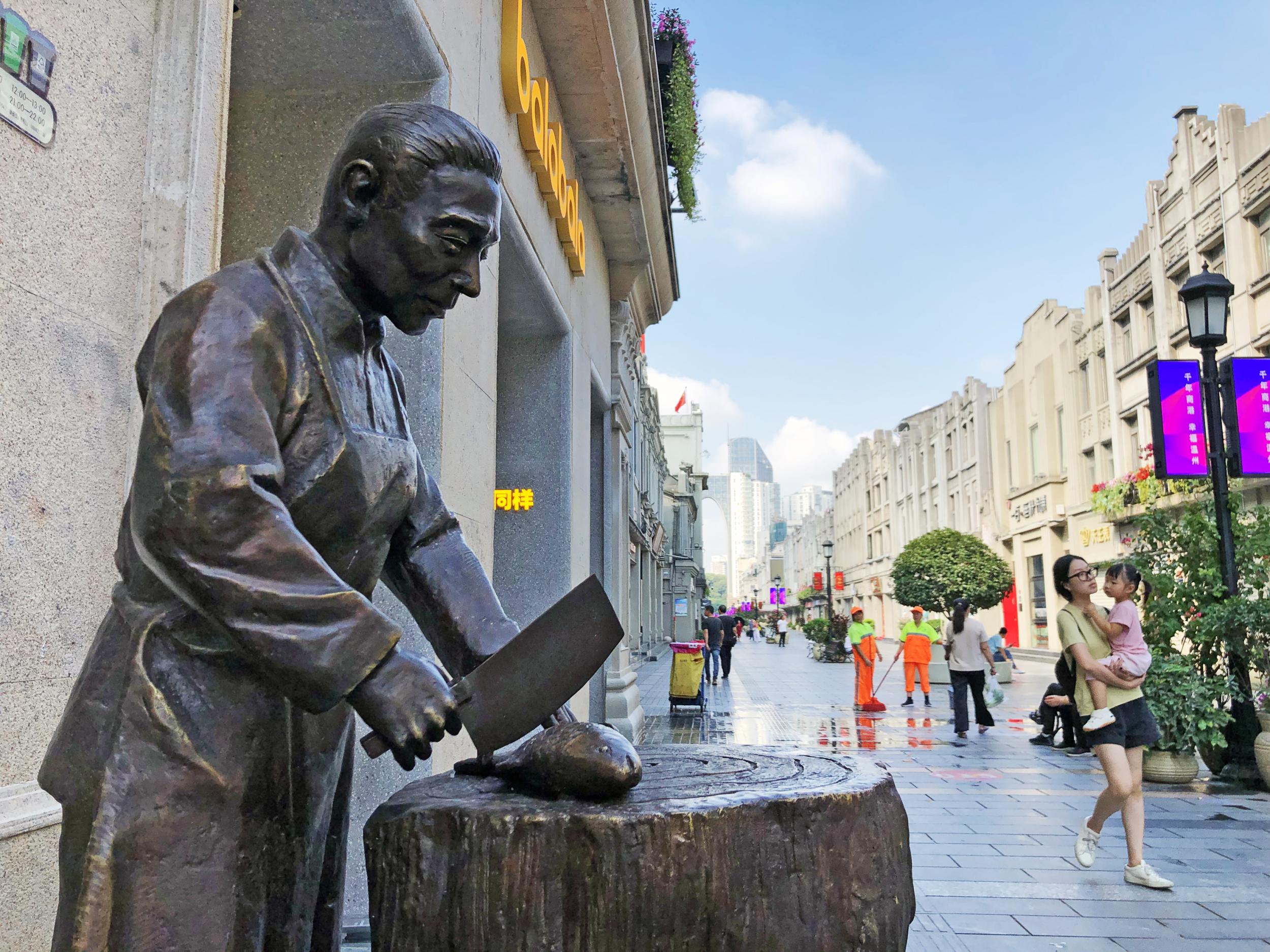 中秋国庆长假将至,一组反映温州民生民俗文化大型铜像作品亮相市区五马街,还原老温州人的生活情怀。