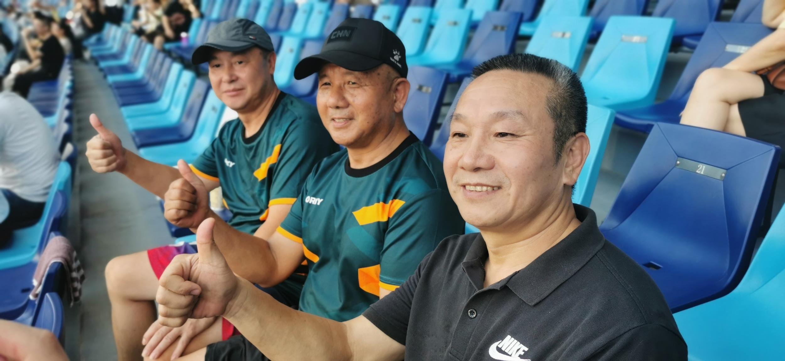 在看台上,记者看到几位身穿统一足球队服的年长球员,正在一边观战,一边点评赛事。