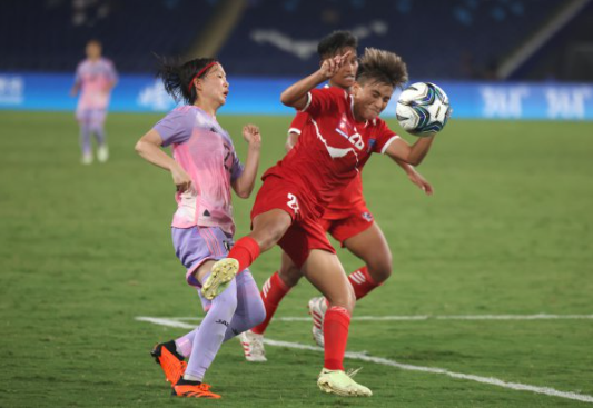 9月25日,亚运女足小组赛D组孟加拉国对战越南、尼泊尔对战日本的比赛在温州奥体中心打响。在场内往来拼抢的热血赛事之外,场外的观众席上亦有独特的风景。中场休息期间,记者在场内走访,看到了不少赛事之外的另一种美好。