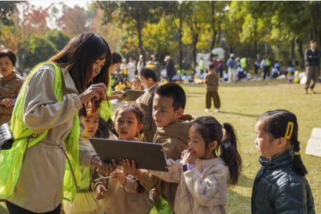 日前,在市区杨府山公园,温州第五幼儿园府东园区小朋友在枫叶树下开展“树叶画秋”活动。时下,我市各地公园、山区的枫叶逐渐变红,为大自然披上一层美丽的锦衣。红黄交织的枫叶在阳光的照射下,呈现出令人陶醉的色彩变化,吸引了众多市民和游客的目光。这些美丽的景色也成为了学生们创作的灵感源泉。