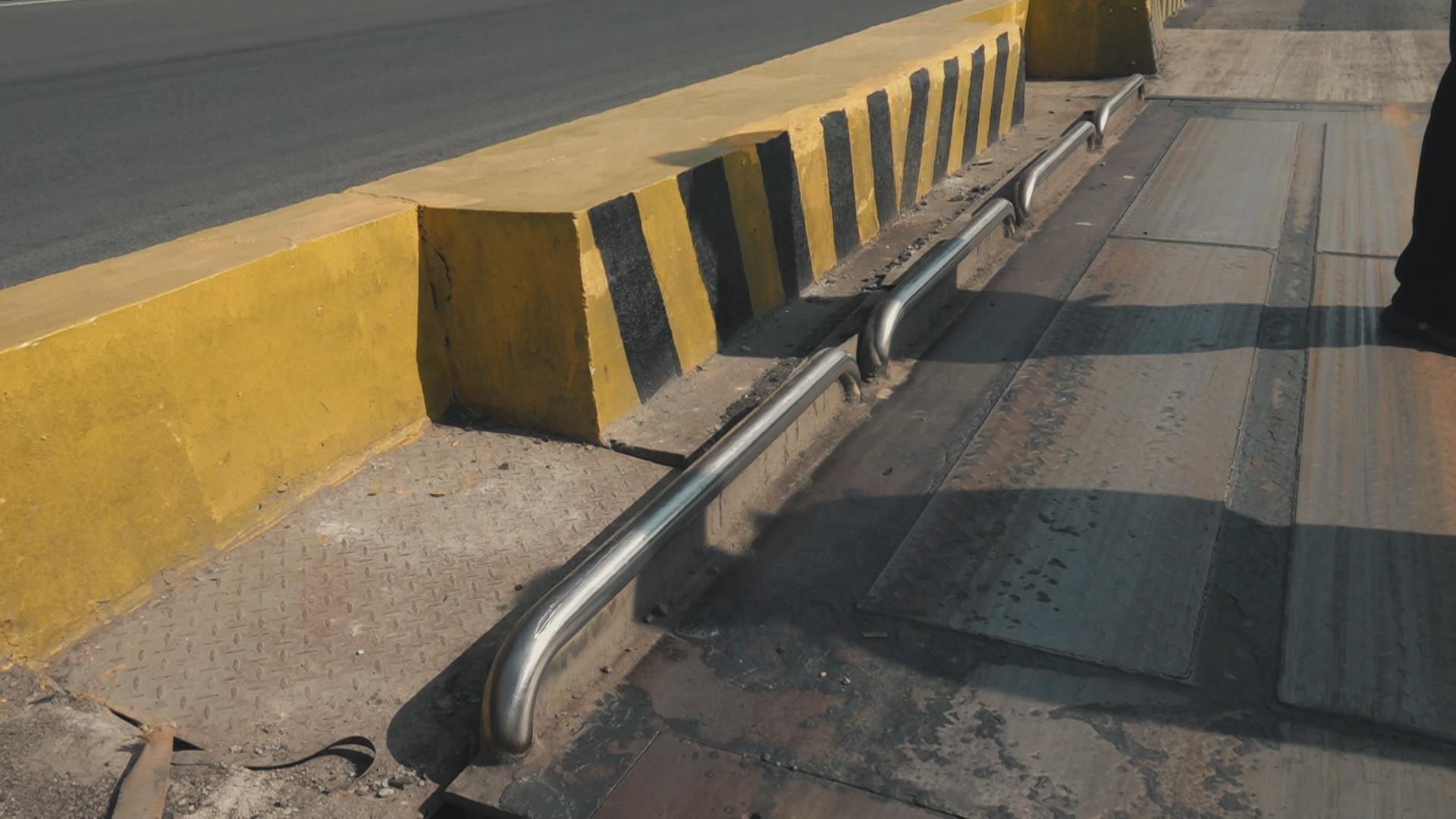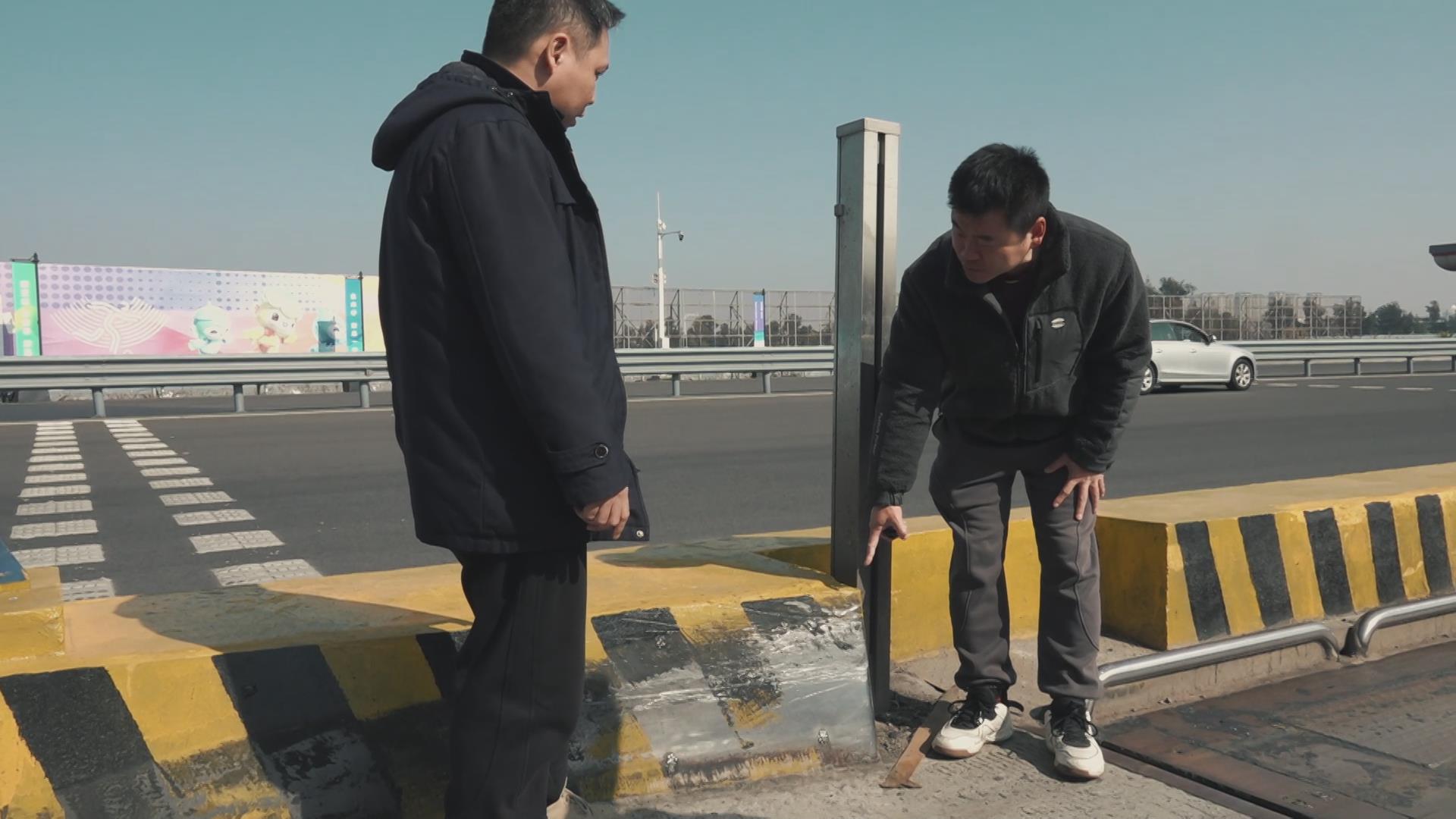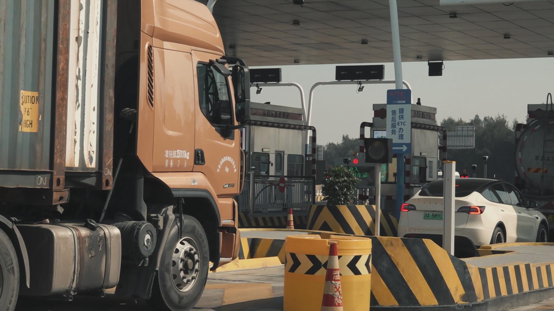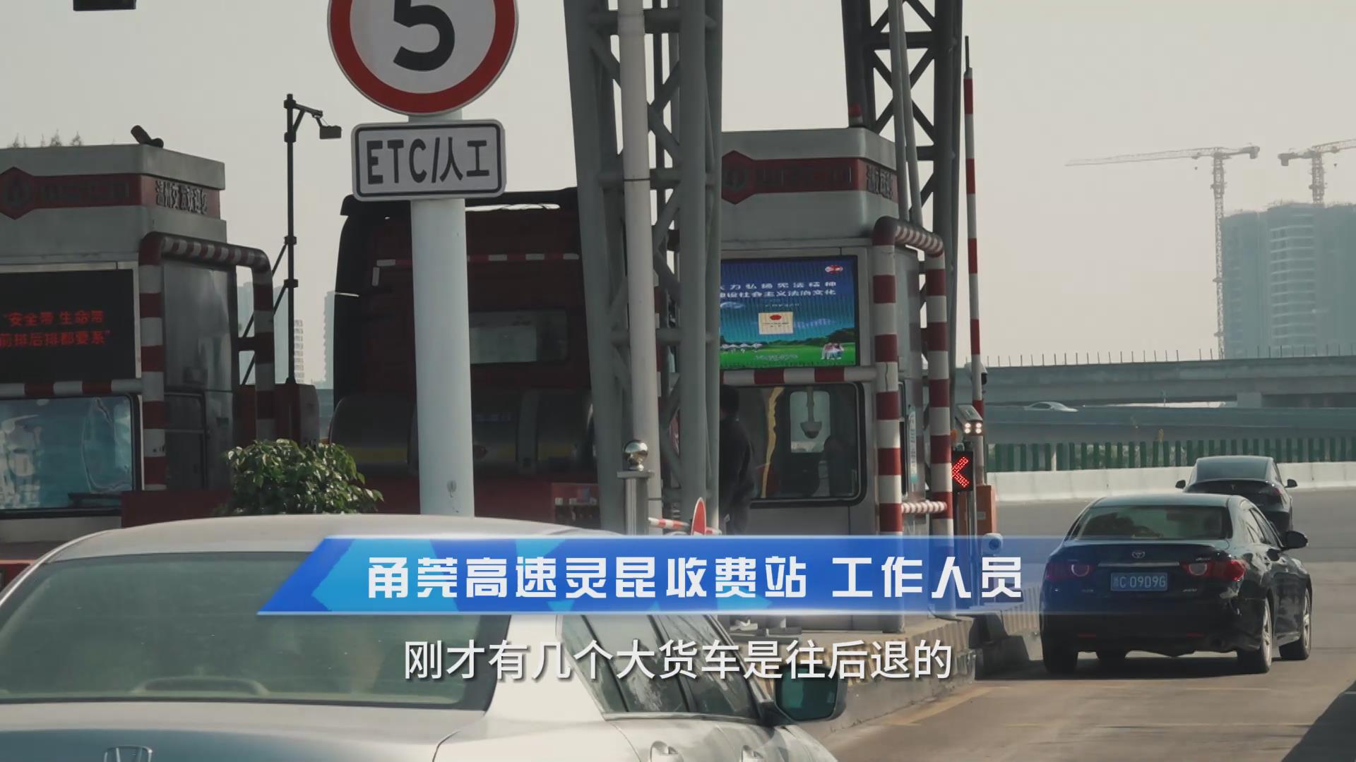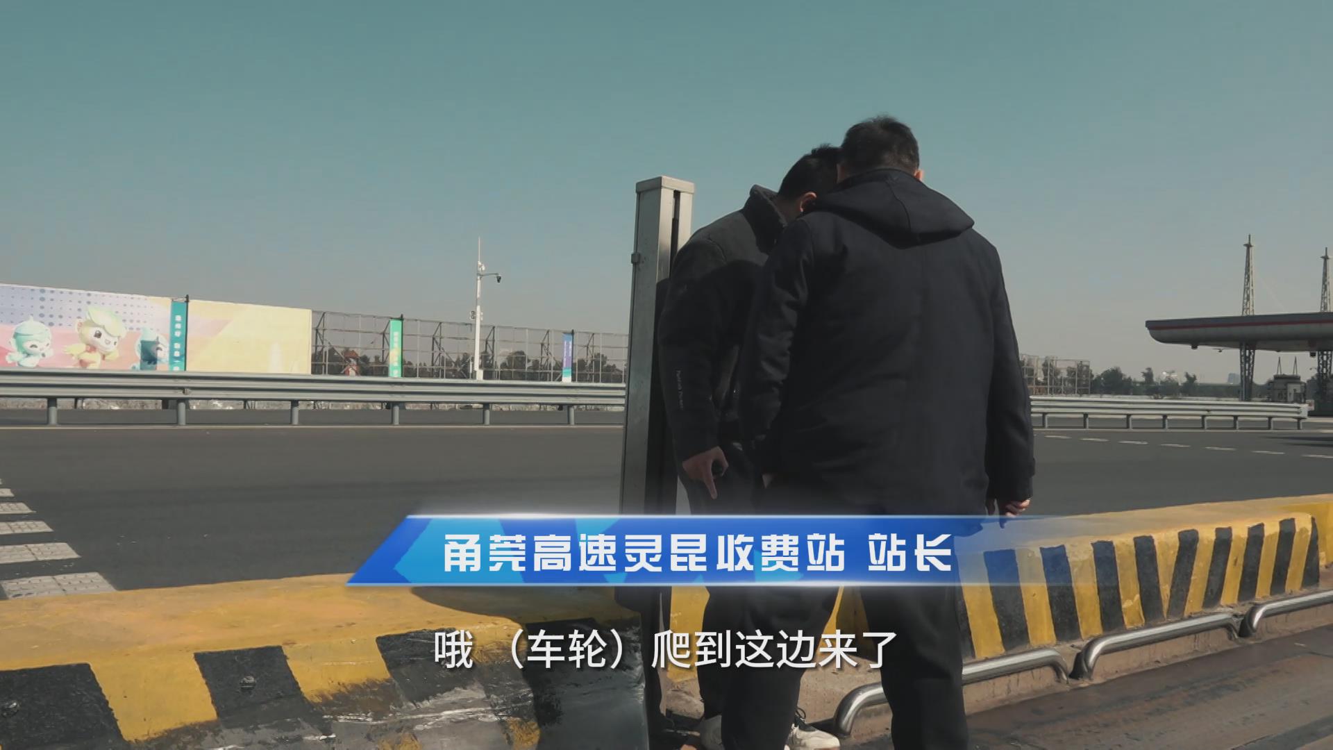 甬莞高速灵昆收费站站长:“(车轮)就在这里蹭,然后这个(车轮)爬上去。”