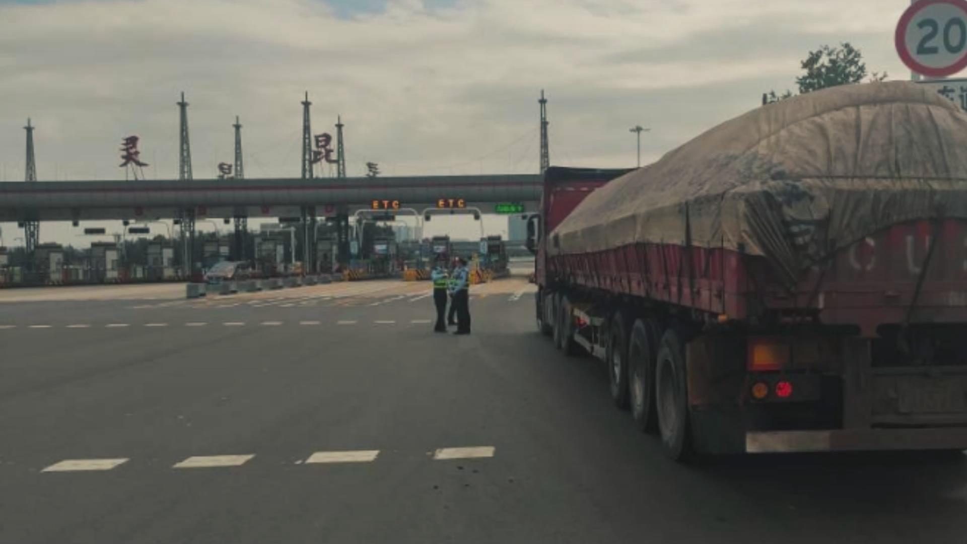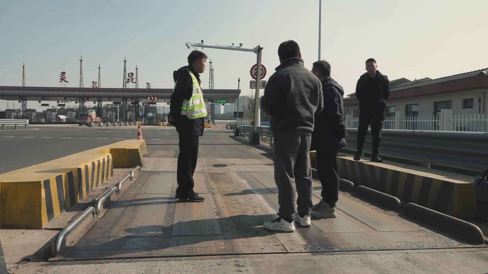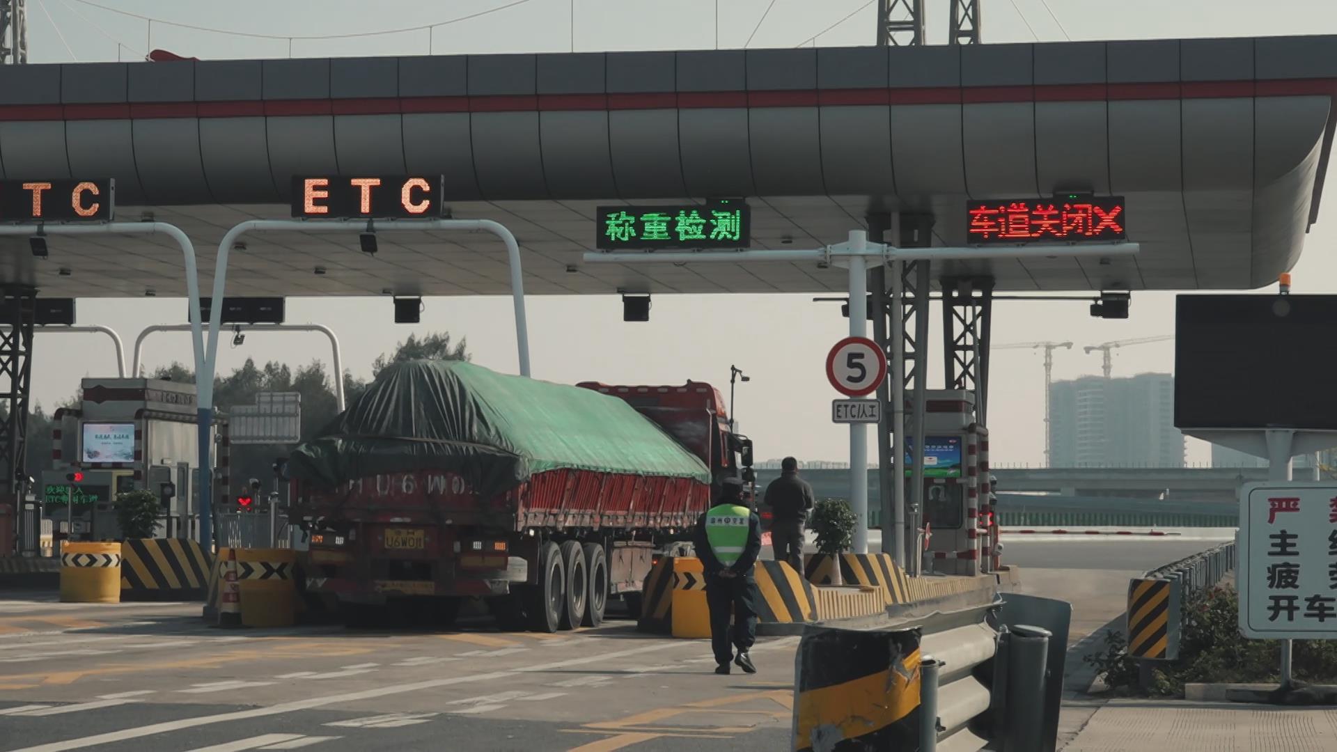1月4日上午,记者根据线索来到了甬莞高速灵昆收费站路口。只见有大量货车按照要求进入地磅称重检测。但时不时有货车被拦在了高速路口。