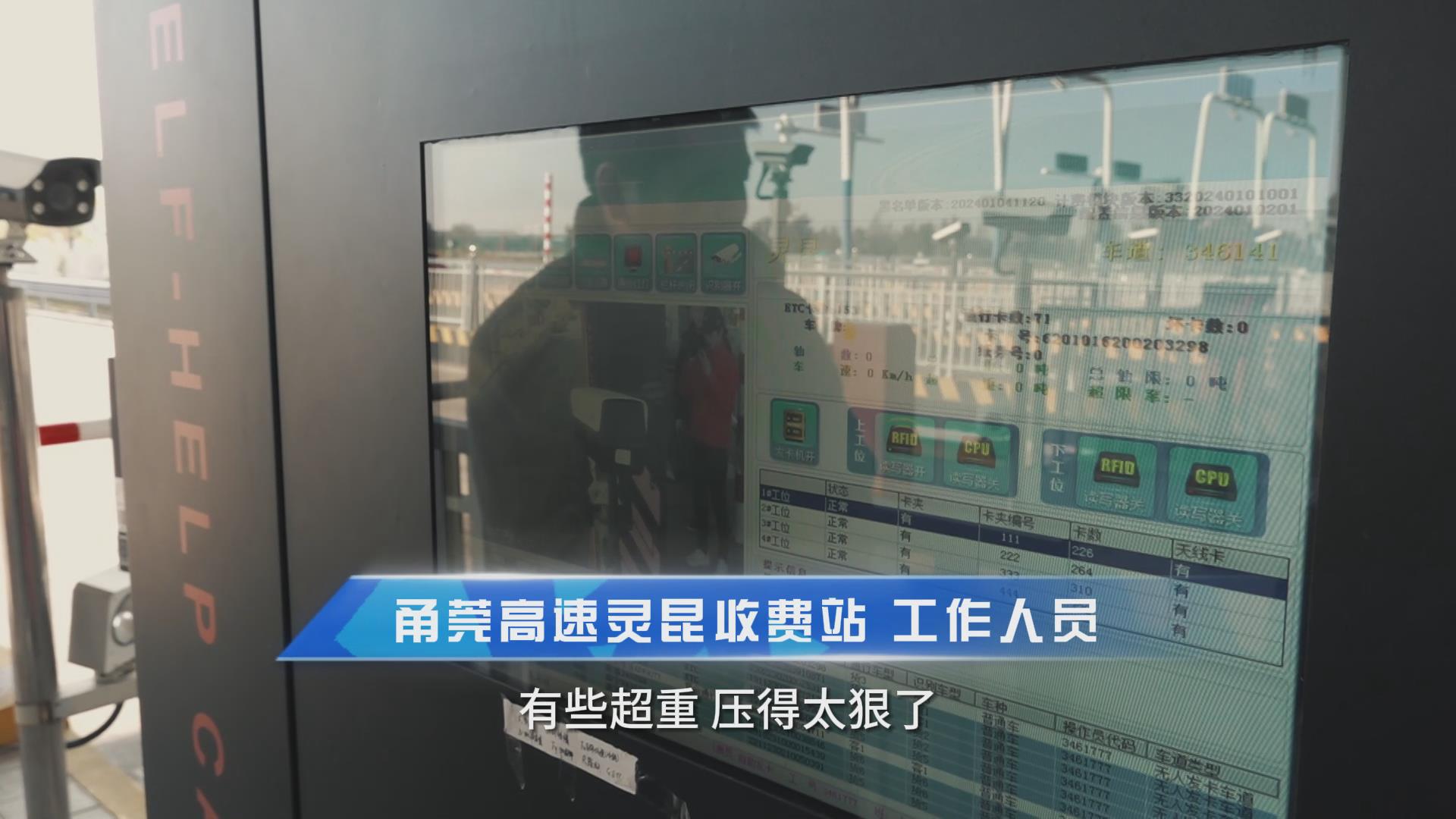 甬莞高速灵昆收费站工作人员:“有些超重,压得太狠了,然后就压坏了。100来吨的,你老是来压的,压坏了。”