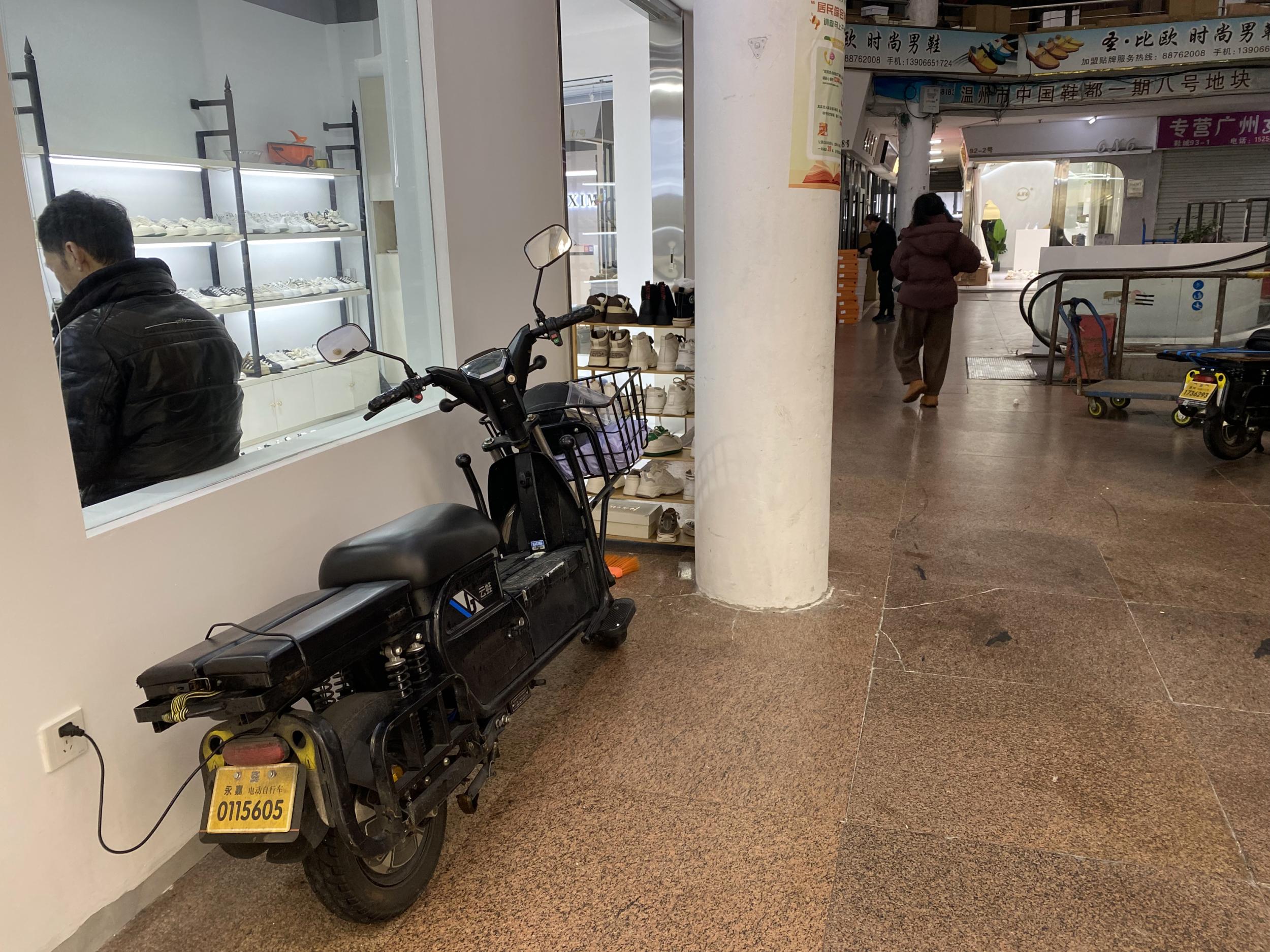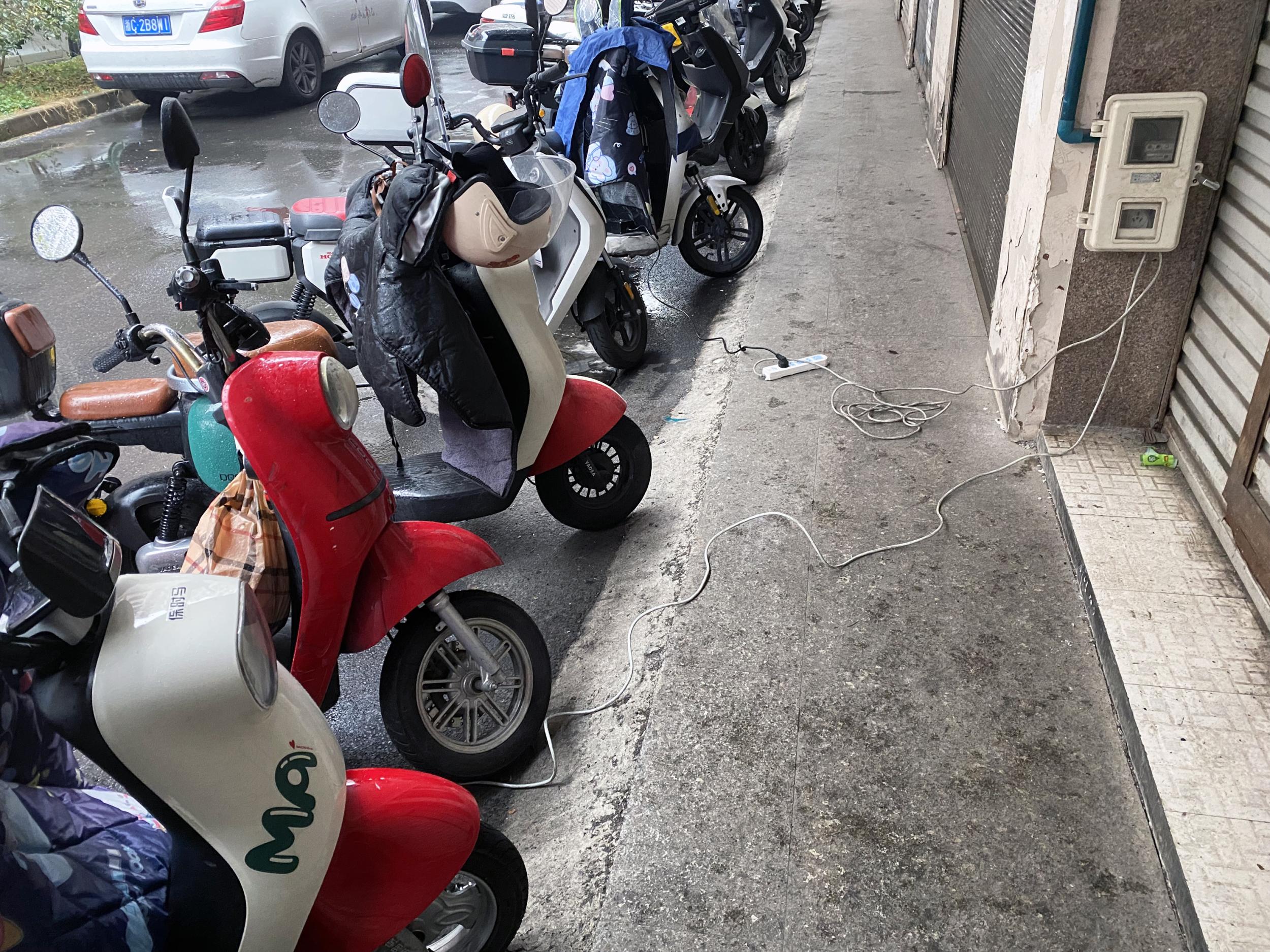 近日发生在南京市雨花台区明尚西苑小区的大火引发关注,现已初步查明该起火灾系地面架空层停放电动车处着火引发。2月28日,记者来到市区温州鞋城,发现有人在市场内直接充电。在金祥商厦过道,停着许多电瓶车,有部分电瓶车利用飞线充电,存在着消防安全隐患。市场内人来往较多,提高消防安全意识是重中之重。