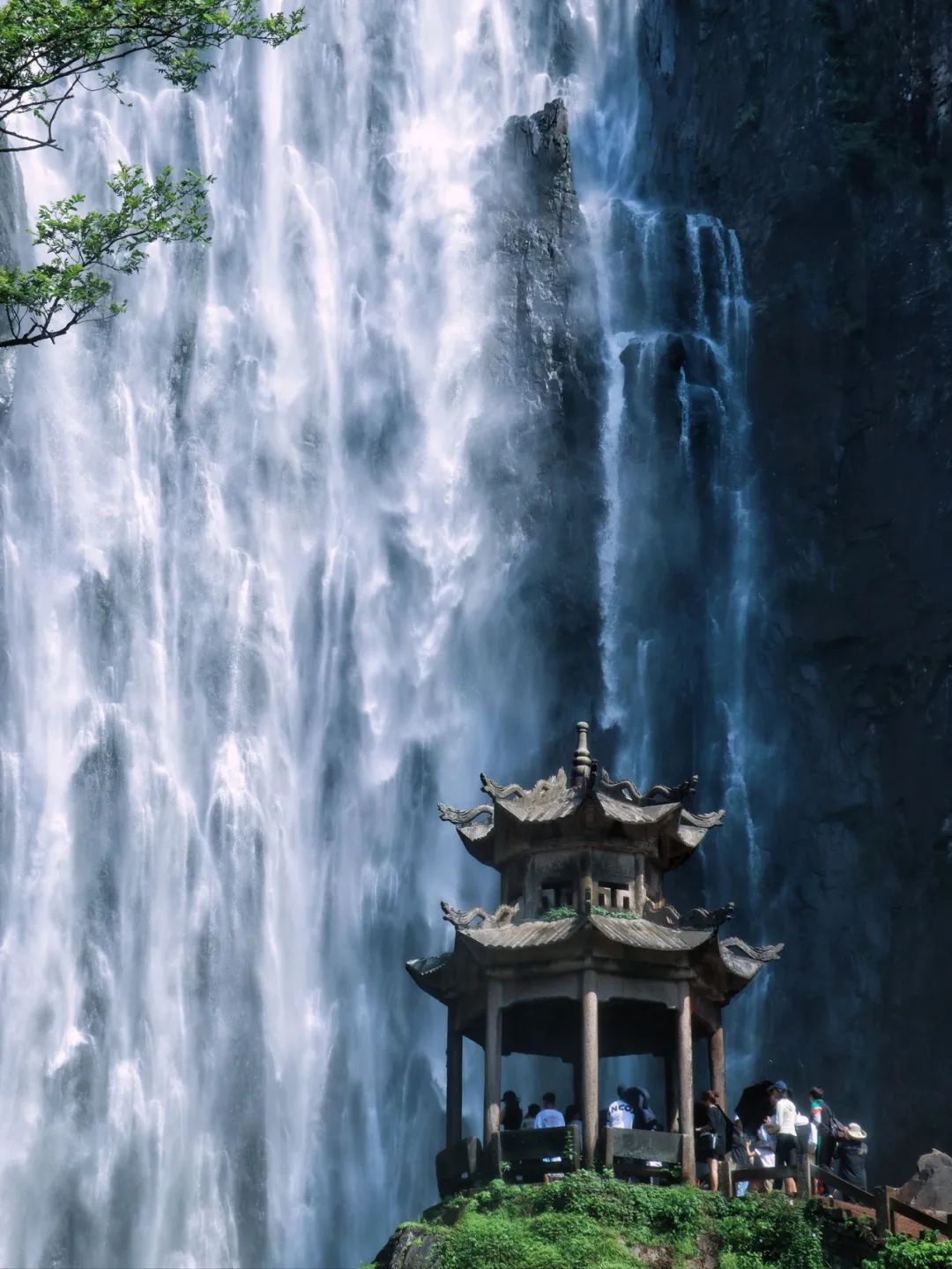 最绝的是,瀑布最佳观景位上设有一亭,当然可以走入亭中近距离观看。一亭一瀑、一山一水,这不就是仙侠剧的场景,不就是神话中仙人归隐之处吗?