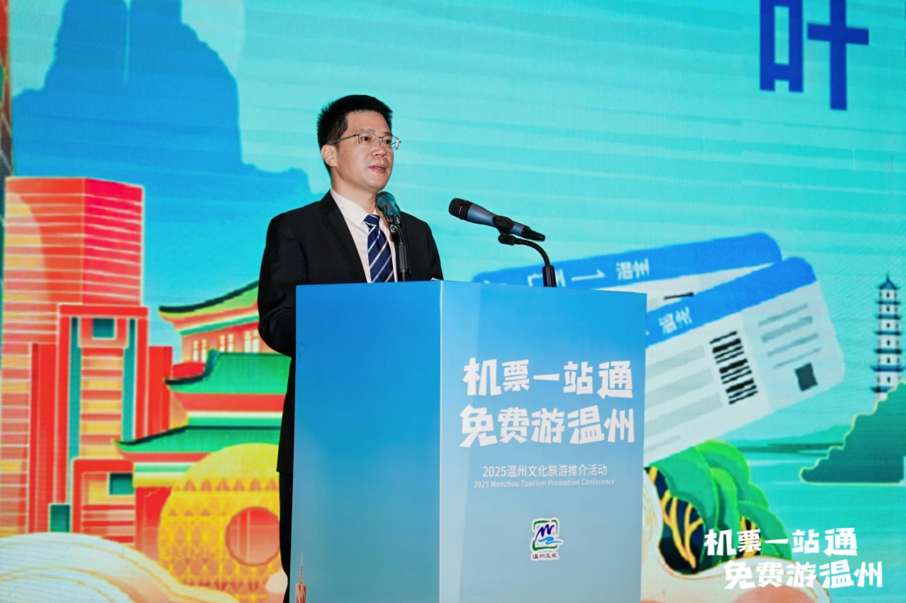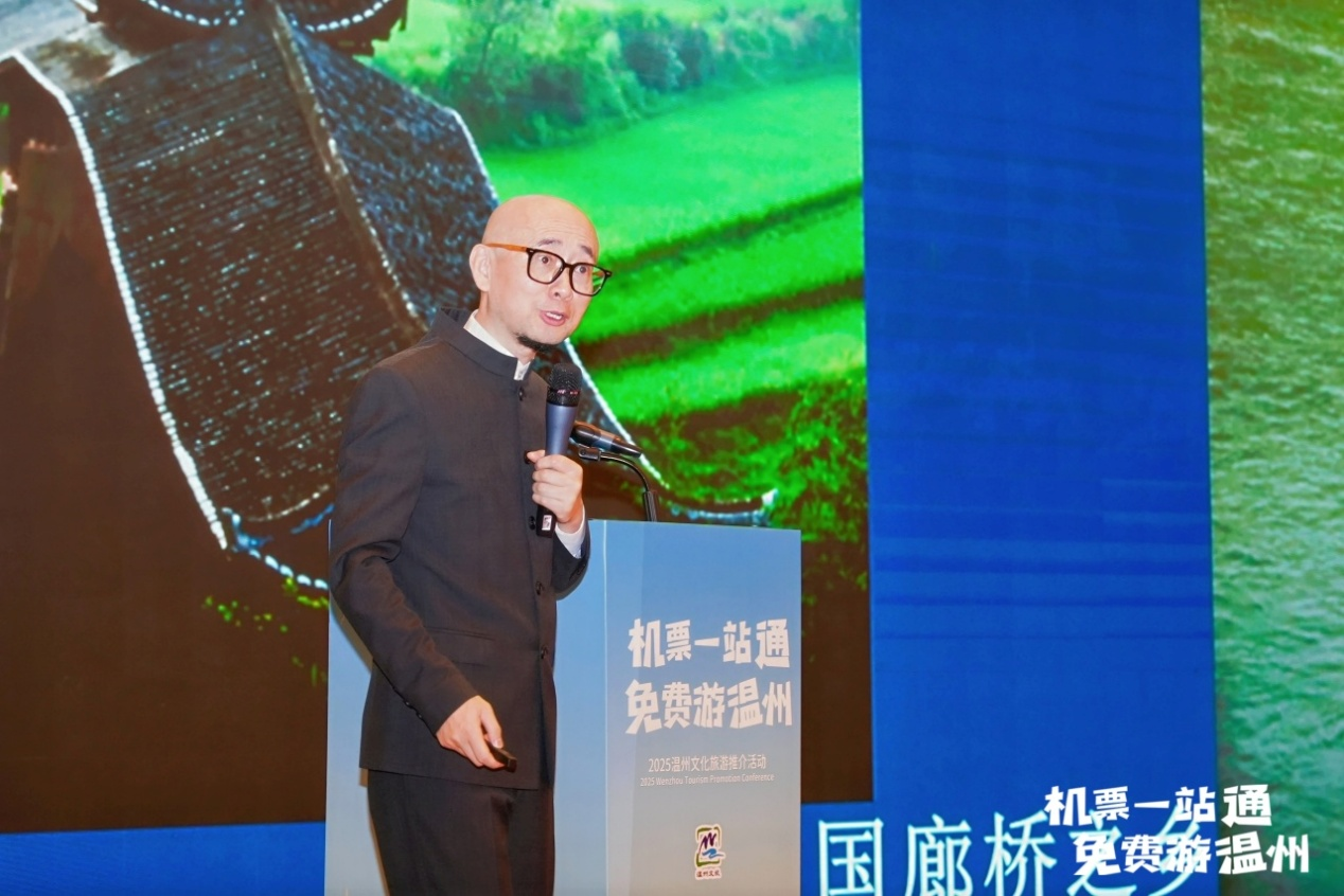 浙江文旅宣推官朱小杰以“山江海畅游”“都市休闲”“文泰康养去班味”为主线,生动演绎了温州特有的山水韵味与城市风情,令在场嘉宾心驰神往。
