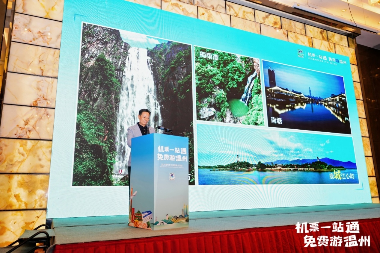黄阳栩指出,温州与广州经济文化交流密切,旅游合作基础深厚,文旅资源互补效益明显。温州大力度推出“机票一站通 免费游温州”活动,配套“一张机票游温州”等优惠政策,打造山江海、千年斗城、文泰康养、奔赴山海、人文瓯味等经典线路,让广州游客省心、省力、省钱,轻松体验温州的山水之美、文化之韵、人情之暖。期待两地进一步加强联动、合作共赢,共推文旅市场火爆繁荣。诚挚邀请广州朋友到温州赏美景、住美宿、品美味。