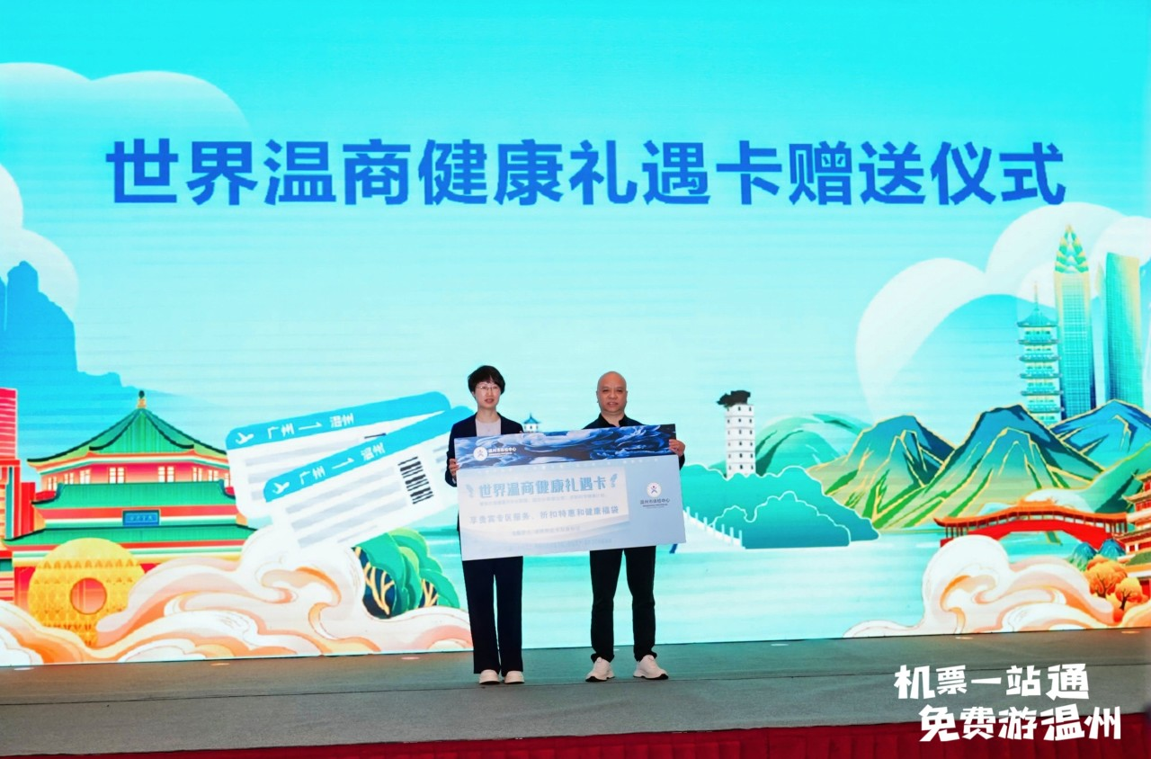 活动现场温情涌动,世界温商健康礼遇卡赠送仪式隆重举行。为致敬在广温商奋斗精神,温州市卫生健康委员会向广州温商代表送出专属关怀———由温州市体检中心量身定制的健康礼遇卡,涵盖贵宾体检、专享折扣优惠及“健康管理福袋”三大权益。卡片既承载着家乡对温商健康的守护承诺,更寄托着“常回家看看”的深情呼唤。未来,温州将持续以家的温暖护航在外温商,让“敢为天下先”的温商精神永葆活力。