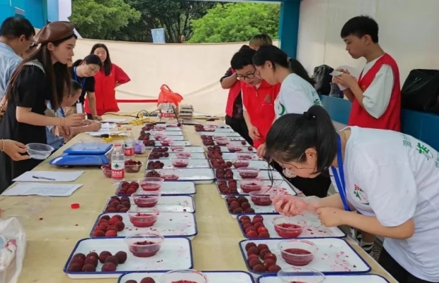 各类展销会上,蒋巧俊老师以专家身份深度参与杨梅评比活动。凭借深厚专业知识与丰富实践经验,他为杨梅品质评定给出权威意见。温科院“梅”你不行工作室及学校志愿者团队承担起评比活动的分类、展示及投票数据统计、同时也开展技术服务,吸引众多杨梅专业合作社、家庭农场及农业公司关注。