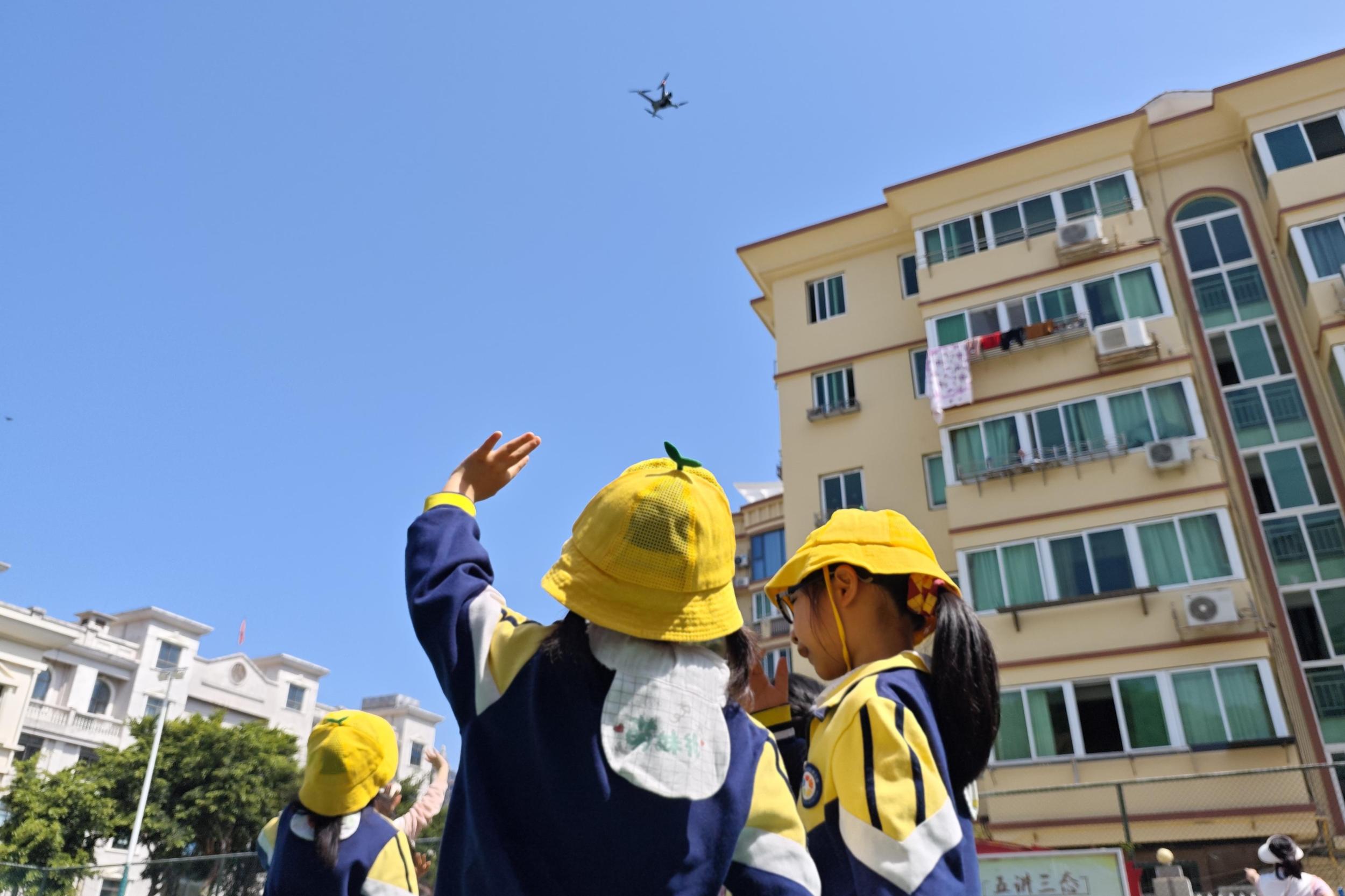 活动中,交警使用无人机喊话的新颖形式开展交通安全宣传。同时,交警化身“安全讲师”,根据小朋友们的年龄特征和认知能力,用生动有趣的语言和互动,讲解安全过马路、正确佩戴头盔、规范使用安全带等交通安全知识。通过砸头盔实验、安全带演示,让小朋友们在寓教于乐的氛围中掌握“一盔一带”的重要性。