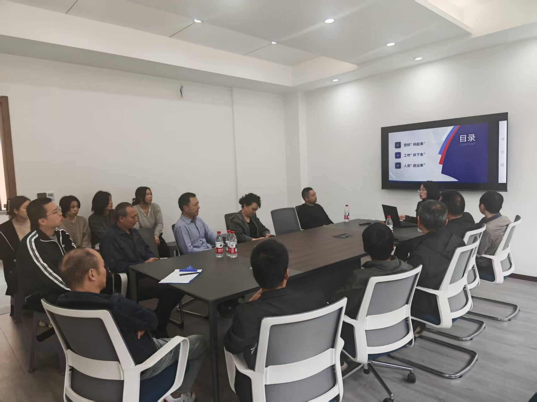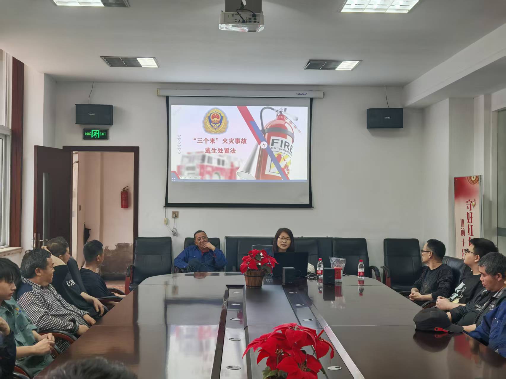 培训采用“视觉看、理论听、现场演”三位一体模式,聚焦火场逃生“三个来”——“警铃响起来,工作停下来,人员逃出来”。消防宣讲员通过事故案例课件剖析火灾危害,强调快速反应的重要性。理论授课后,现场模拟火灾场景,释放烟雾弹营造真实环境,指导员工用湿毛巾捂住口鼻、低姿沿疏散标志有序撤离,切实掌握逃生技能。