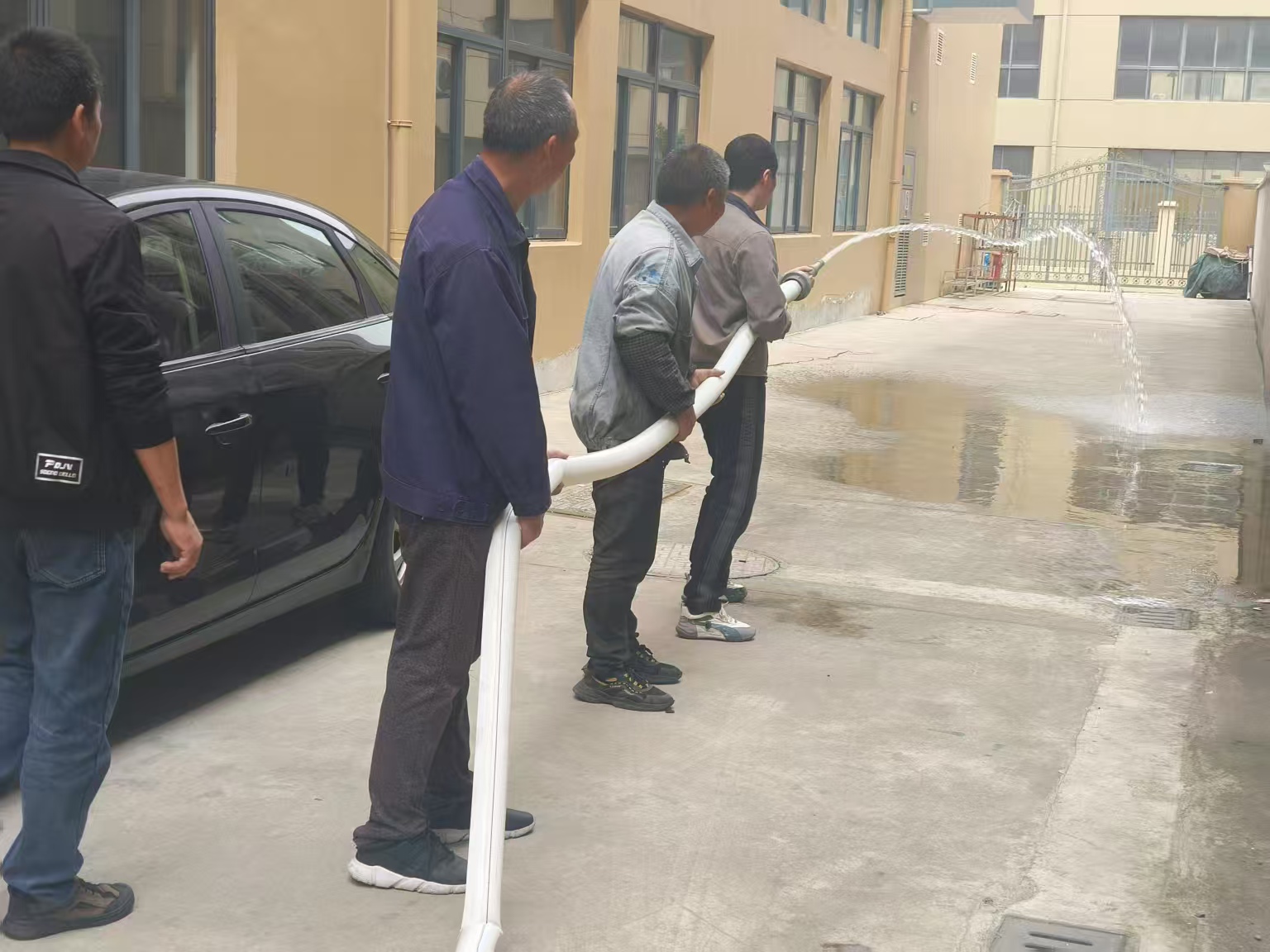 逃生演练结束后,消防人员现场演示消防栓、水带、水枪等器材的功能及使用方法,手把手指导员工进行连接操作,确保参训人员熟悉消防设施使用流程,提升初期火灾应对能力。