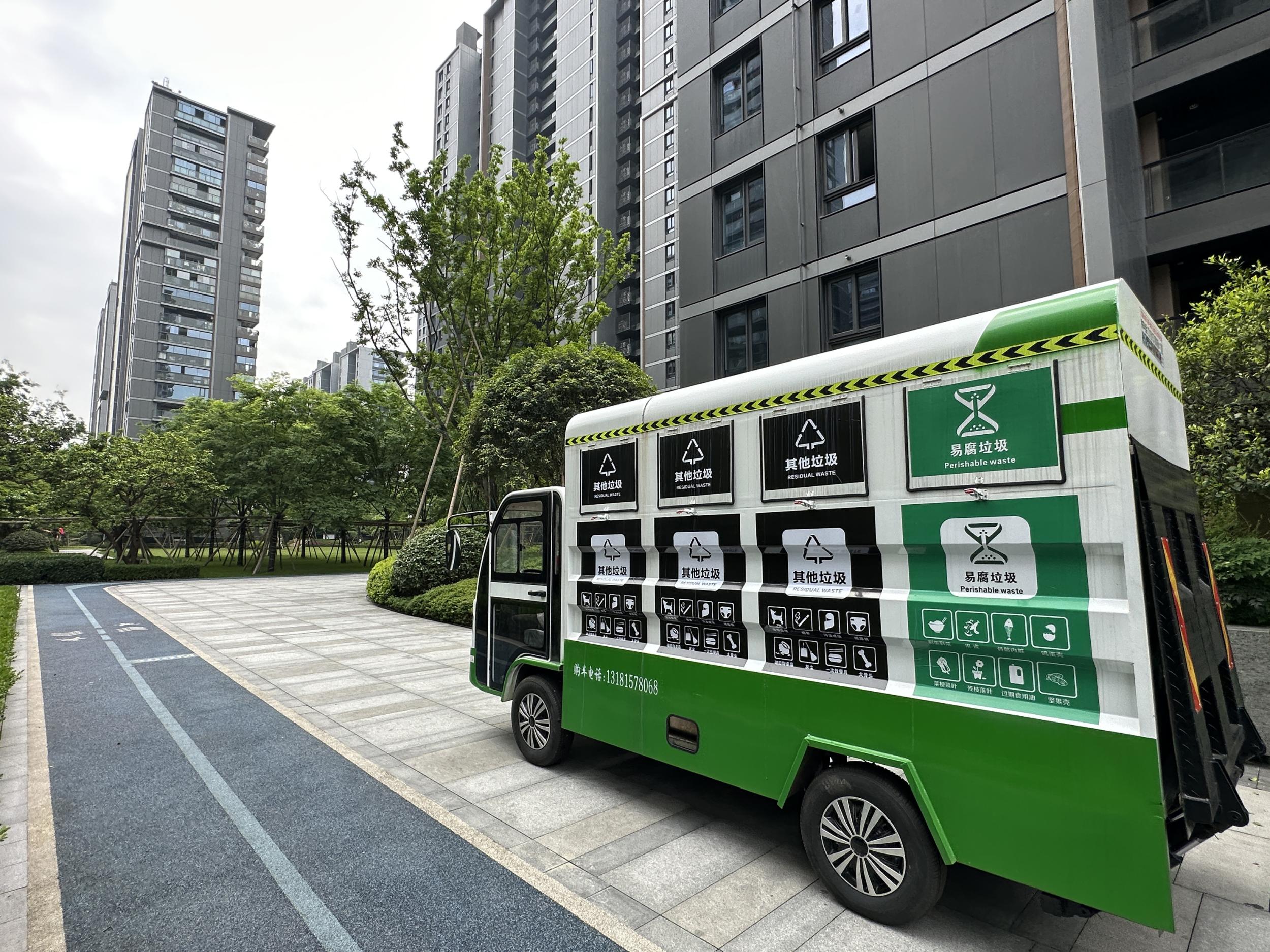 这种模式提升了居民参与垃圾分类的实操性。该新型移动垃圾分类车车身全长仅4.5米,虽小巧玲珑却功能齐全,车型整体紧凑,适合在小区内穿行。“车厢整体采用密闭防泄漏式设计,根据居民需求设置了1个其他垃圾投放口、3个易腐垃圾投放口,可容纳8个标准分类桶,在满足居民日常分类投放需求的同时,能有效防止异味扩散和垃圾外溢。车厢还配备了语音提示系统,在运行过程中循环播放垃圾分类提醒,帮助居民更好地掌握分类知识。