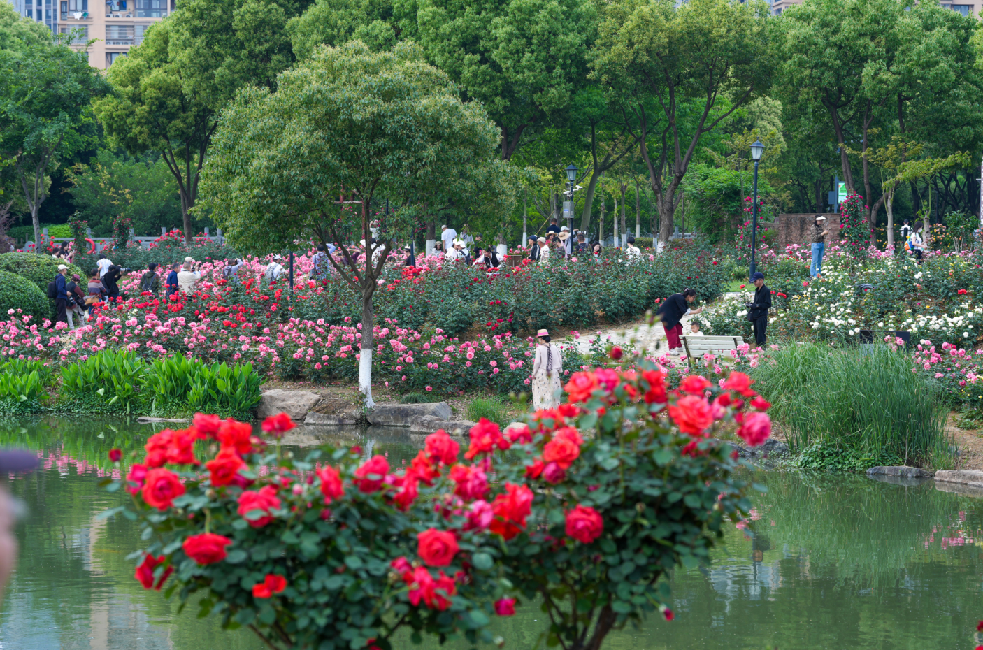 连日来,温州市区杨府山公园7500平米的月季园以燎原之势怒放!园内五大色系50余个品种的月季施尽芳香、争奇斗艳,开得好不热闹,吸引众多市民前来拍照打卡。