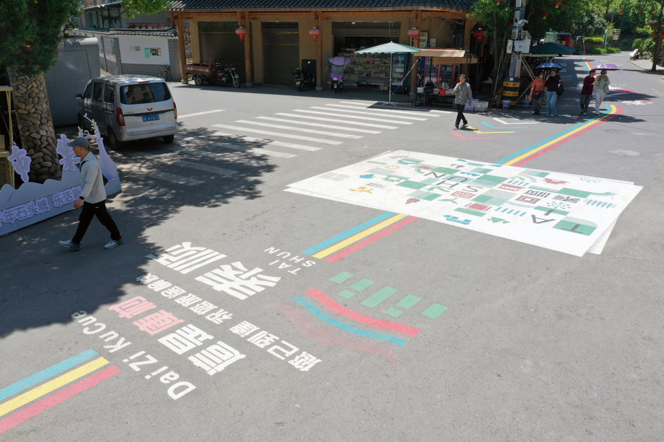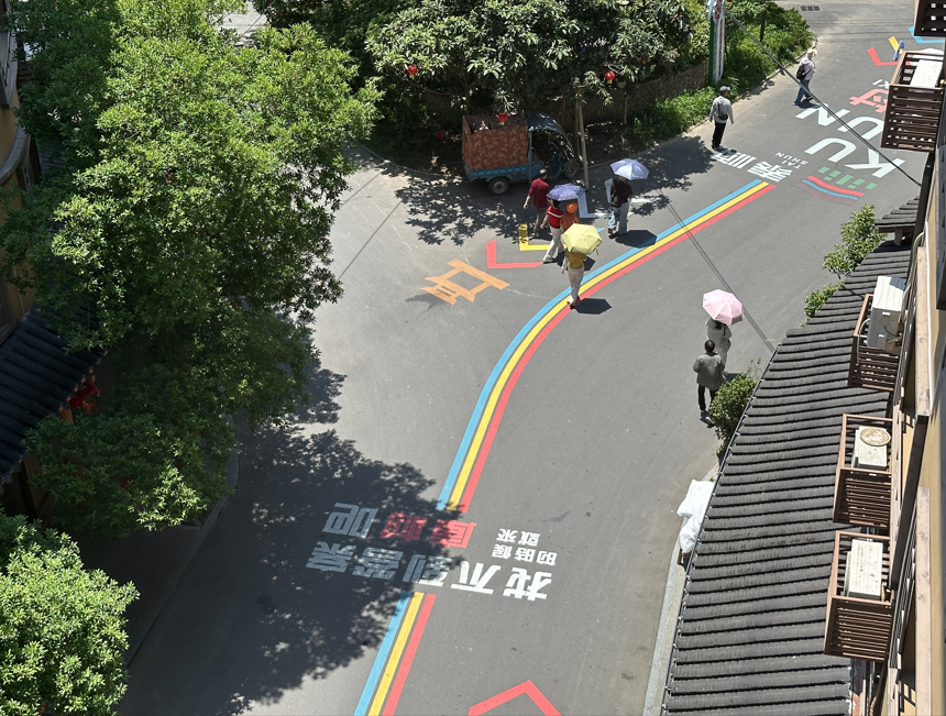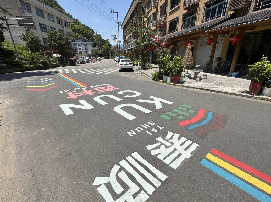 据泰顺南浦溪镇工作人员介绍,他们投入近两万元对库村道路进行彩绘设计及绘画,用多彩的线条和醒目的字体呈现“库村”地标。彩绘道路既醒目又美观。