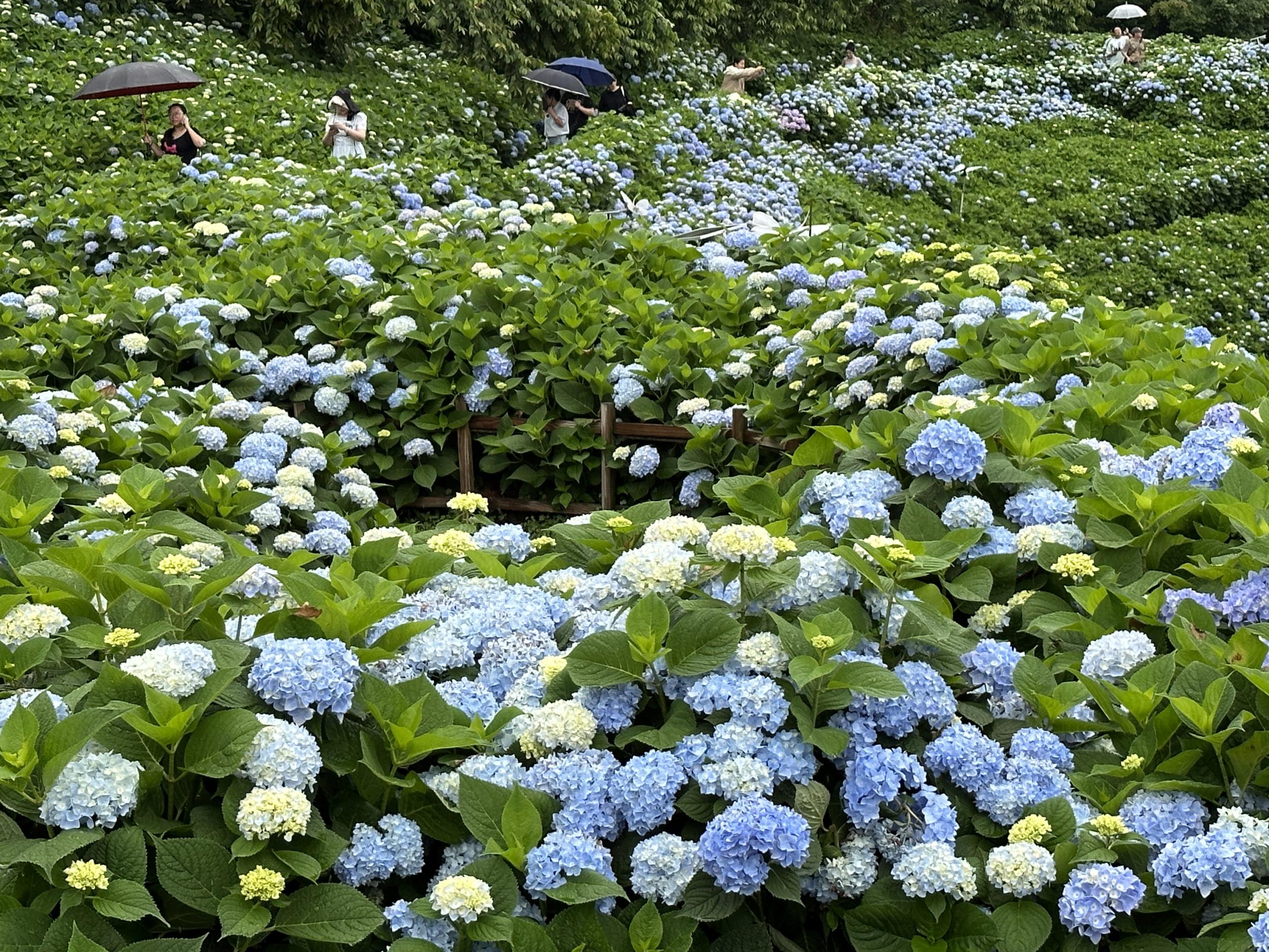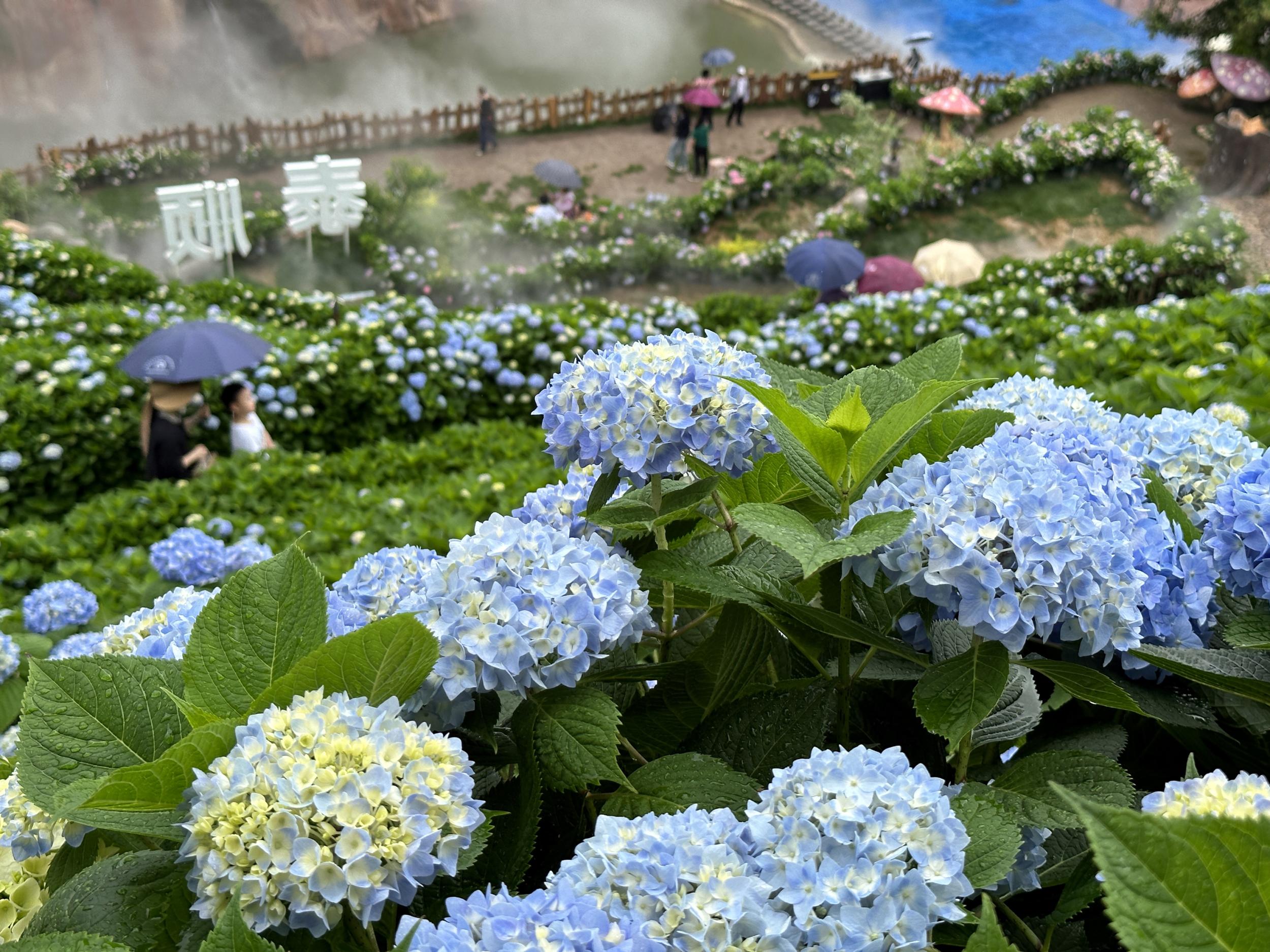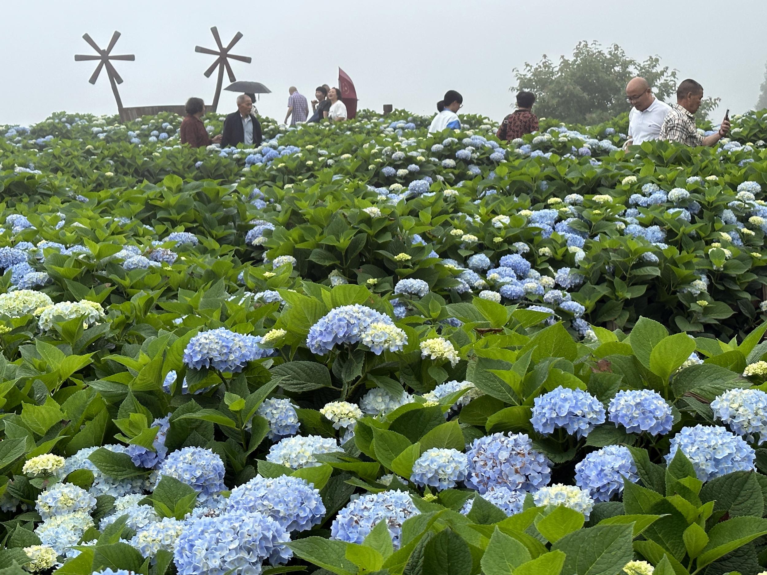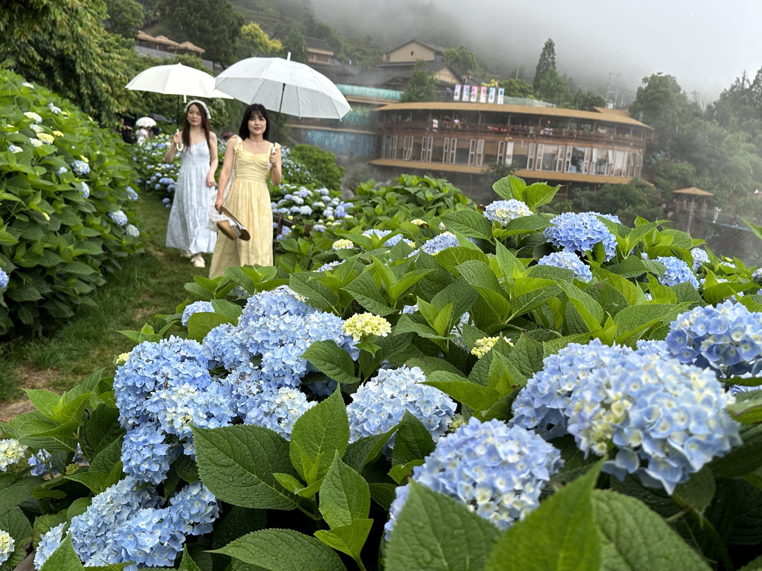 5月19日为中国旅游日。5月18日上午,泰顺绣球花夏日奇幻嘉年华在筱村公社开幕。10多亩绣球花盛开雨中喜迎客,漫山遍野的绣球花丛中到处有打卡观光的游客。