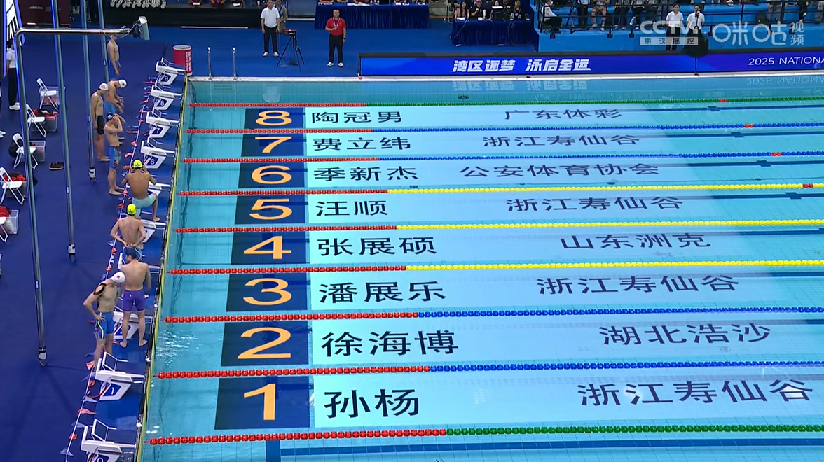 5月19日19:30,2025年全国游泳冠军赛第三个比赛日,男子200米自由泳决赛被认为是本次冠军赛最具卖点的一场较量。