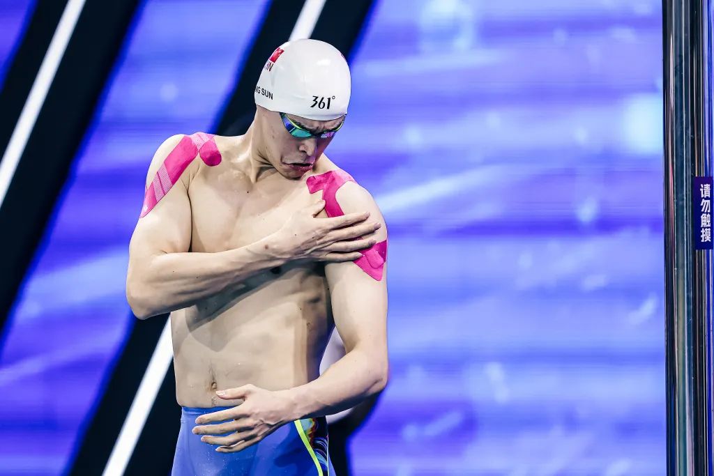 手臂贴满肌肉贴的孙杨,看了一眼大屏幕,并没有表现出太多失望。