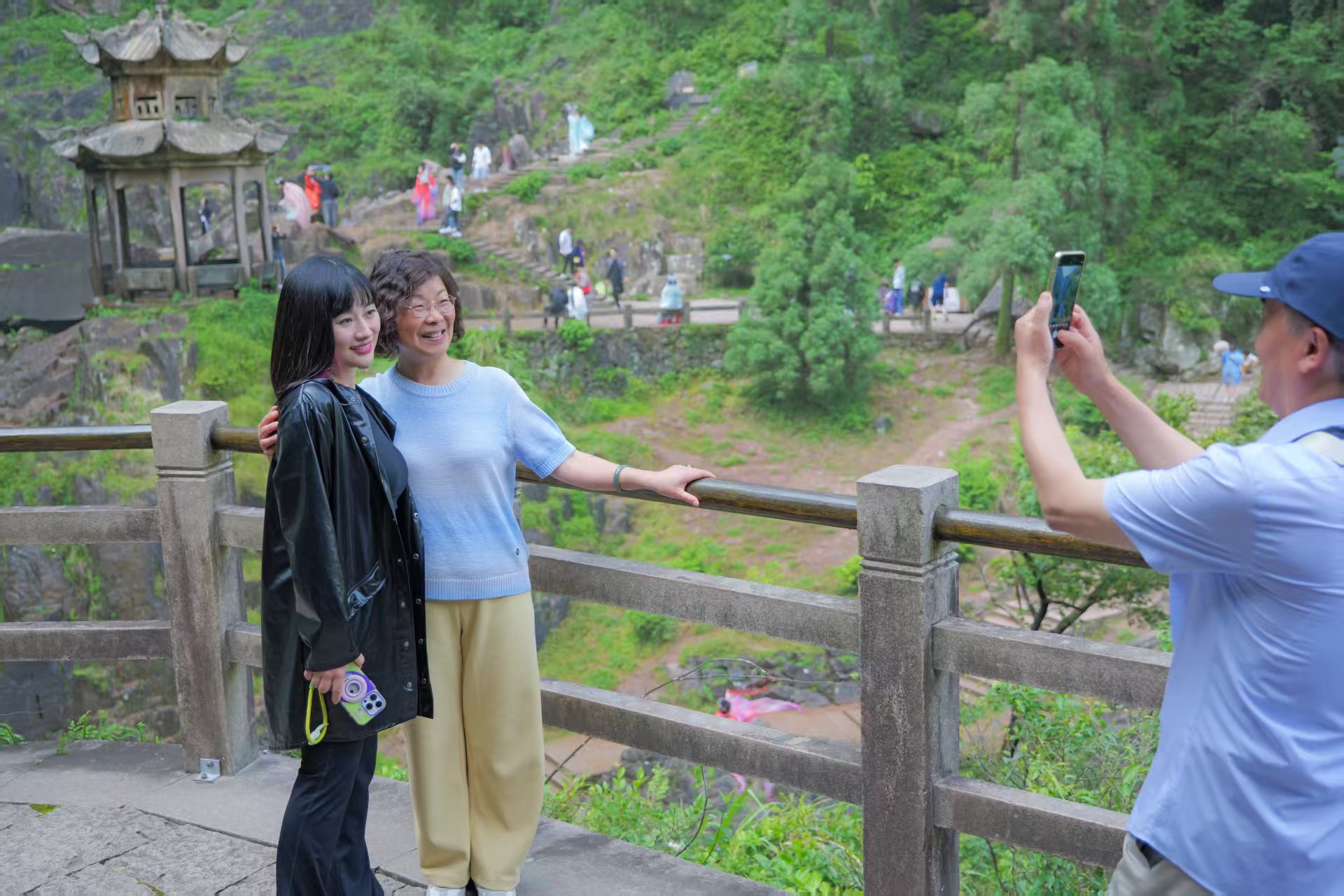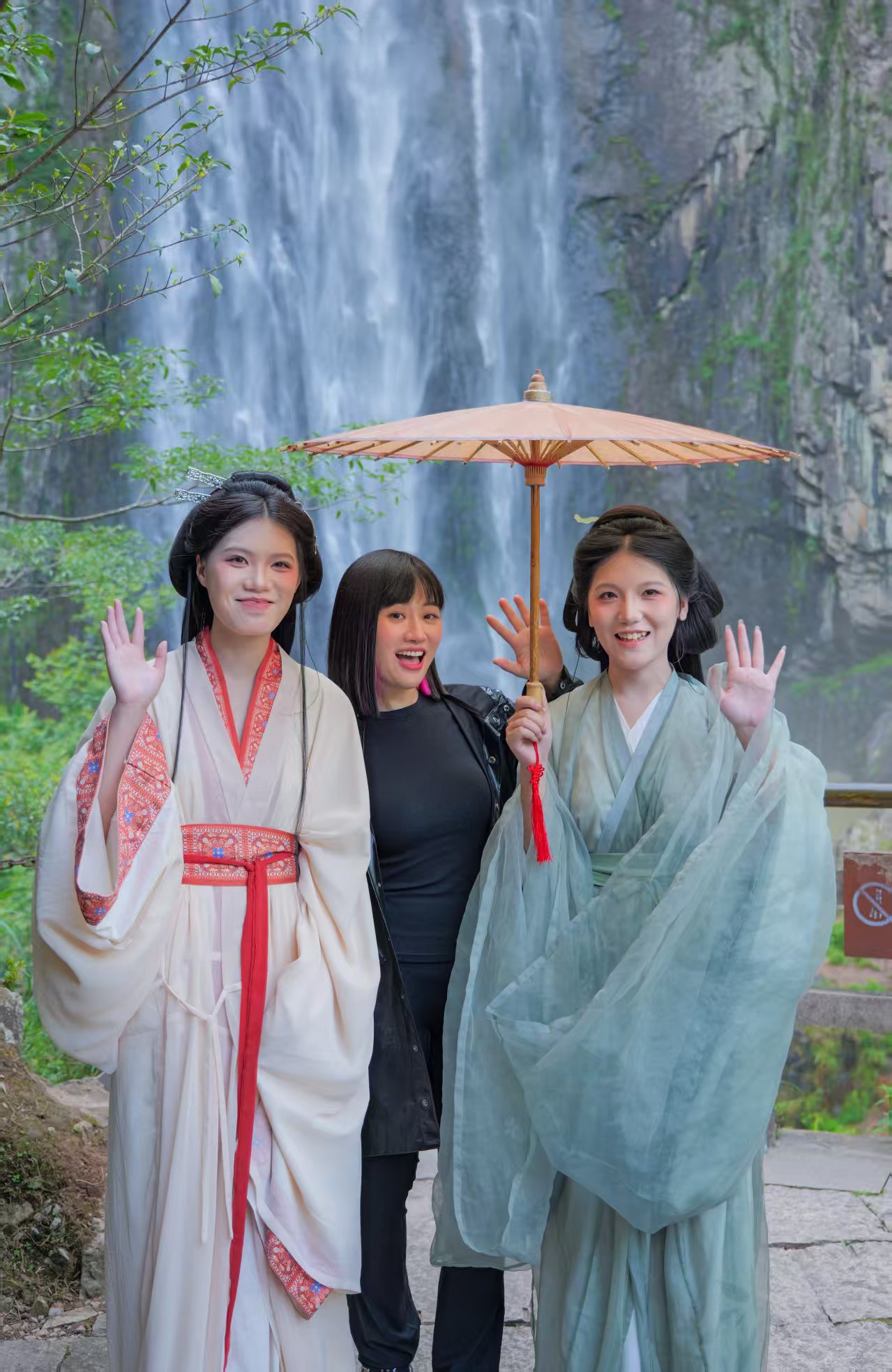 漫步百丈漈景区,身着汉服、仙侠服饰和动漫造型的游客穿梭其间,与飞瀑、古亭相映成趣。当他们得知严慧倩登顶珠峰的壮举后,纷纷带着钦佩的眼神围拢上来请求合影。这一路的风景和人们的关怀,让严慧倩觉得自己是真的回家了。