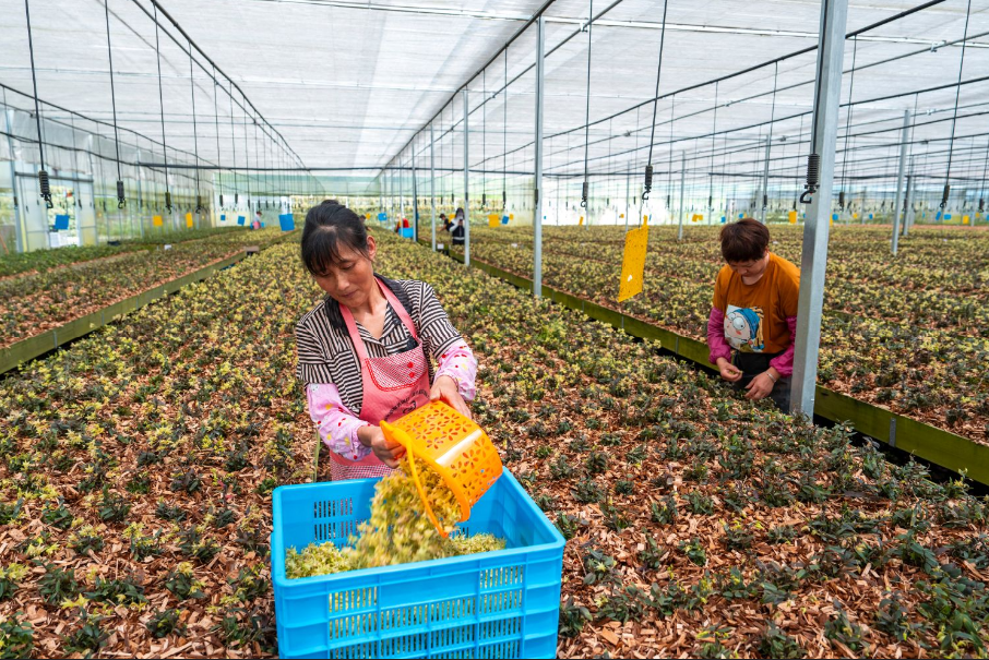 近年来,乐清市以“小石斛”打造“大产业”,立足铁皮石斛“土特产富”全产业链建设,铁皮石斛种植面积达到1.3万亩,培育石斛饮品、护肤品等百余款深加工产品,逐步完善种苗培育、种植、加工、文旅融合的产业格局。