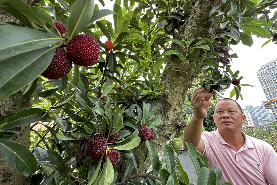 6月9日,一些市民慕名来到温州市区景山的浙南特色果树种质资源保护基地,看到杨梅树上的果子长势良好,有些树上硕果累累而喜出望外。