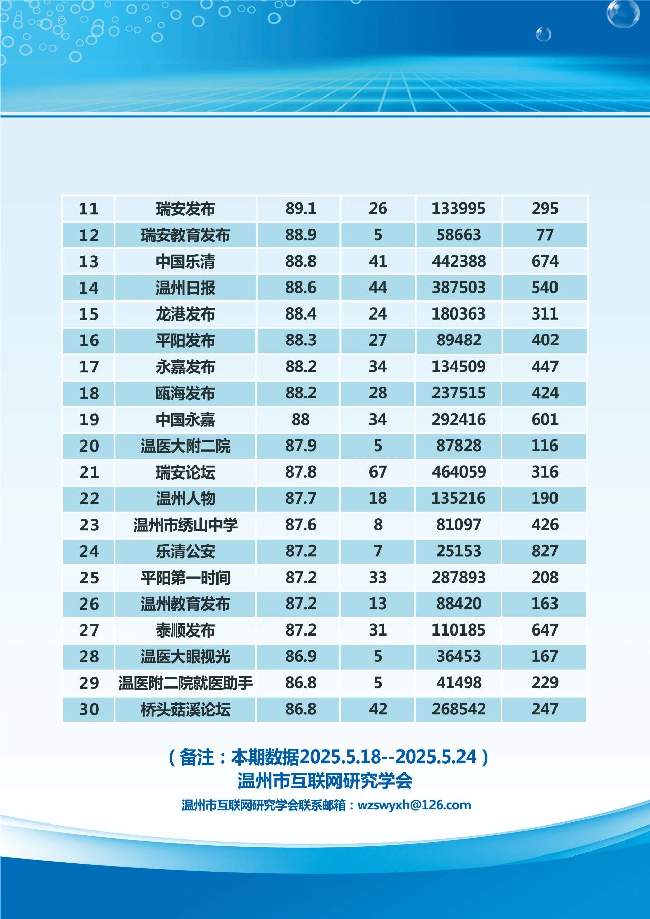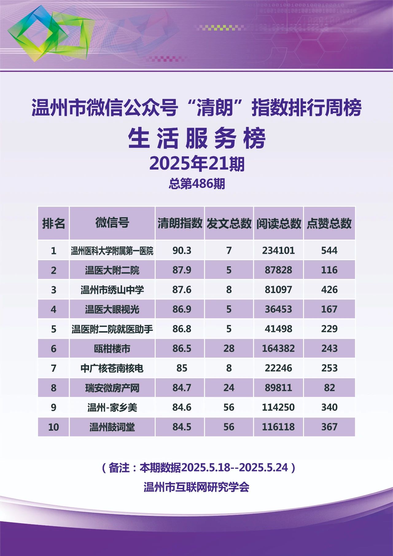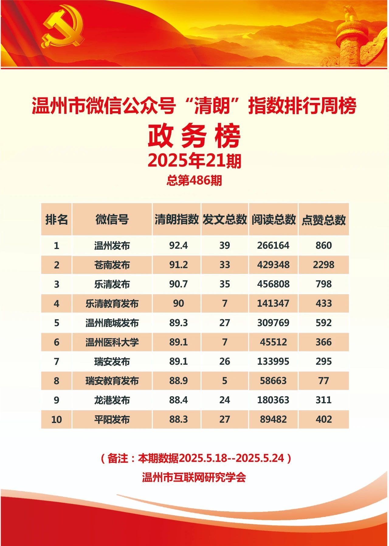 本期,温州市互联网研究学会监测时间范围为2025年5月18日至5月24日,分别对4417个微信号和246个抖音号进行了数据采集,共采集微信文章8546篇,抖音视频1438条。