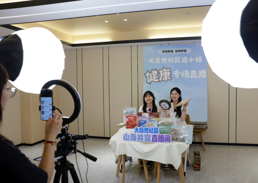 据介绍,南汇街道大自然社区网络直播间自2022年成立以来,除了在直播间开展法律、医疗健康等各种公益知识讲座外,还联合南汇街道党群服务中心设立了“山海共富”公益直播间,陆续开展了多场助农直播活动,适时推介地方特色土特产品,开展了一轮接一轮的助力城乡共同富裕的行动。
