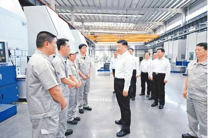 2025年5月19日至20日,中共中央总书记、国家主席、中央军委主席习近平在河南考察。这是19日下午,习近平在洛阳轴承集团股份有限公司智能工厂考察时,同企业职工亲切交流。 新华社记者 燕雁/摄