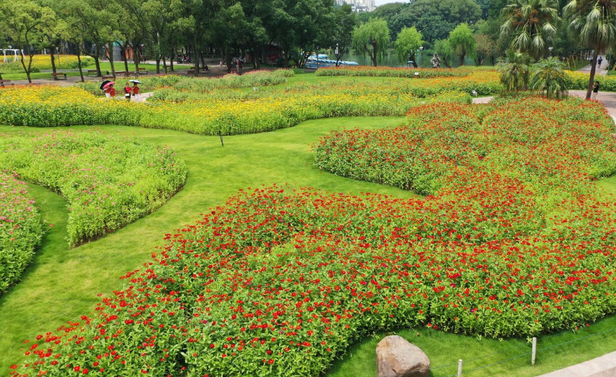 6月23日,温州市区马鞍池公园,园内的“百日草”迎来了盛花期,红、黄、粉、紫、白五个颜色的花朵竞相绽放,热烈绚丽的色调点燃了公园里盛夏的色彩。