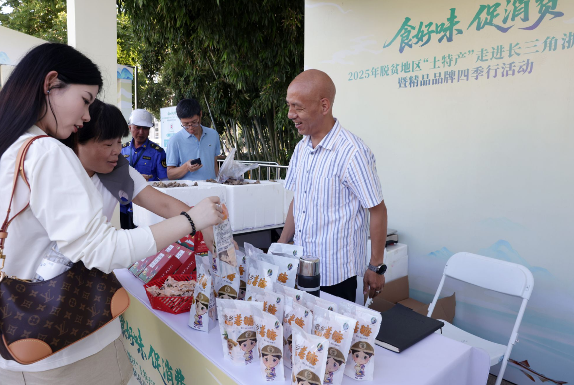 7月3日,“食好味 促消费”2025年脱贫地区“土特产”走进长三角浙江专场暨精品品牌四季行活动在温州科技广场启幕。