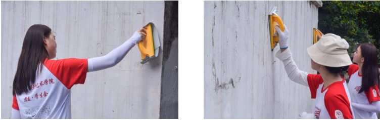 砂纸与墙面的摩擦声,是这场艺术创作的序曲。队员们分工明确,手持砂纸躬身作业,从粗糙到平滑的墙面肌理变化,不仅为后续绘画奠定物理基础,更磨砺着青年学子的耐心与毅力。