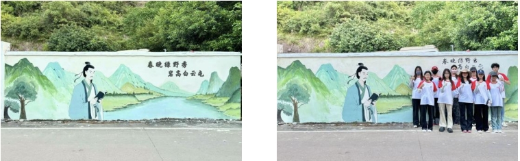 “云日相辉映,空水共澄鲜”,谢灵运笔下的山水意境穿越千年,在温州乡村的墙面上焕发新生。温州商学院“啄木鸟”暑期社会实践队以墙为纸、以笔为锄,将东晋诗人的风雅才情与“民族要复兴,乡村必振兴”的时代命题巧妙融合,在谢灵运纪念馆周边打造出兼具文化厚度与艺术张力的墙绘长廊,让斑驳墙面变身“会说话的文化展板”,成为当地新晋网红打卡地。