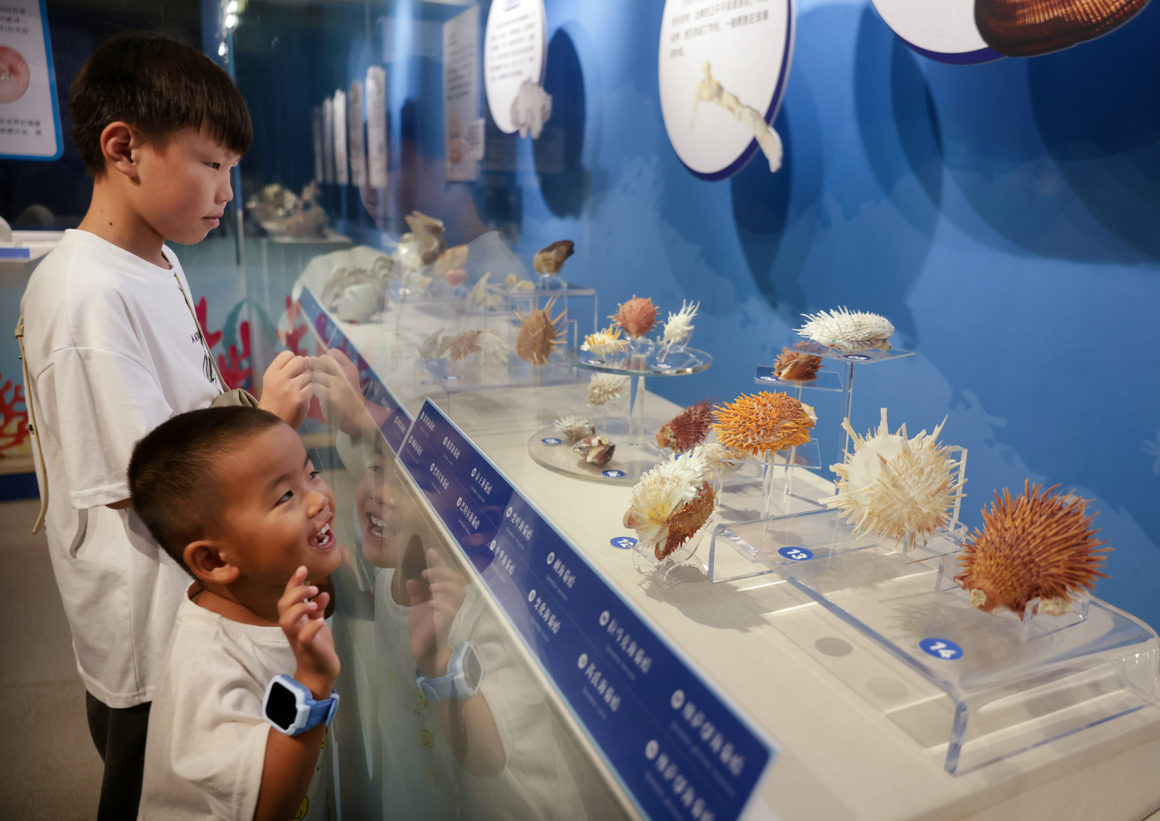 7月10日,《听见海的心跳——贝类与珊瑚的探秘之旅》展览在温州博物馆临展馆启幕。本次展览精选浙江自然博物院、温州博物馆、东海贝雕艺术博物馆250余件贝类、珊瑚和鱼类等海洋动物标本,打造一场关于海底世界的奇幻漫游体验,给暑假里的孩子们开启了一场夏日清凉的海洋探秘之旅。这个夏天,让大家从贝类与珊瑚的故事出发,走进这座璀璨的海底宫殿,走进人类与自然最初的连接。