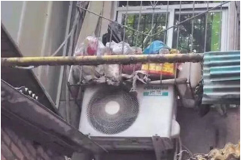 连接内外机的电线(冷媒管包裹的电线)如同“血管”。长期风吹日晒雨淋,绝缘层容易老化、脆裂、短路,迸出火花点燃附近物品。尤其在外机旁堆放纸箱、塑料等杂物时,风险激增!