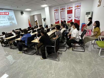南郊街道垃圾分类办,于2025年7月10日上午在社区会议室内开展辖区物业垃圾分类宣传活动。