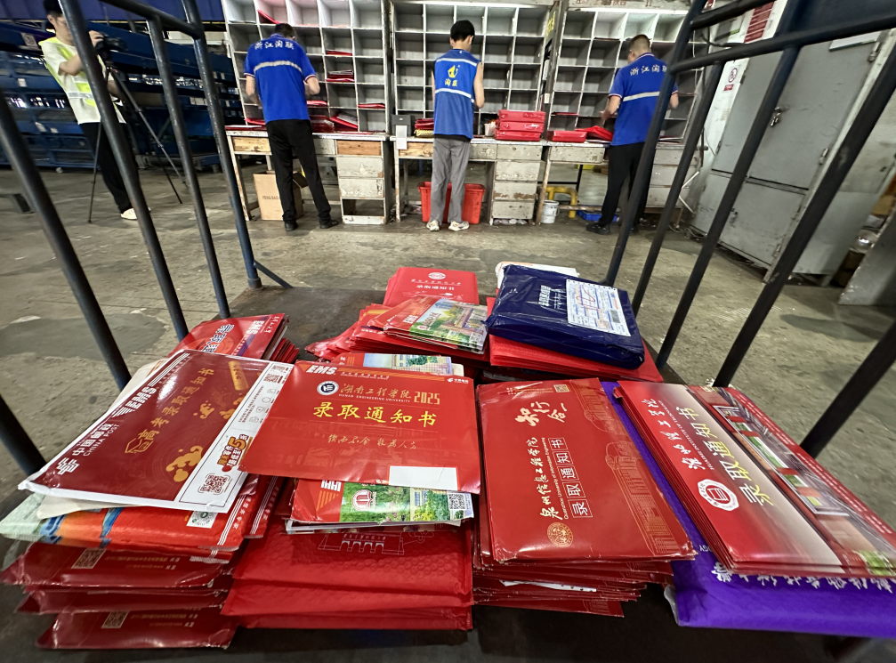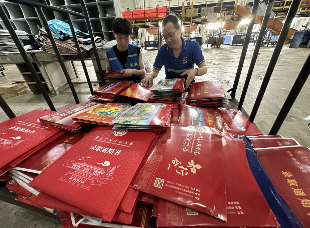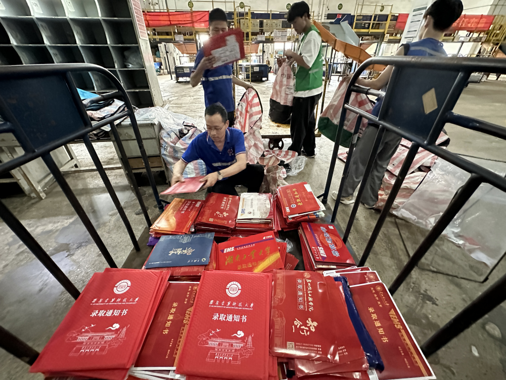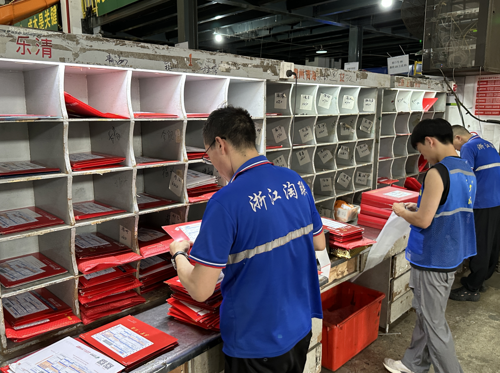 7月30日,温州市邮政分公司邮区中心的工作人员正在紧锣密鼓地处理来自全国各地的高校录取通知书收发。这几天,该中心开始进入高校录取通知书收发高峰期,现在每天收发件达2000多件,预计在8月上旬可增加到日收发件4000多。