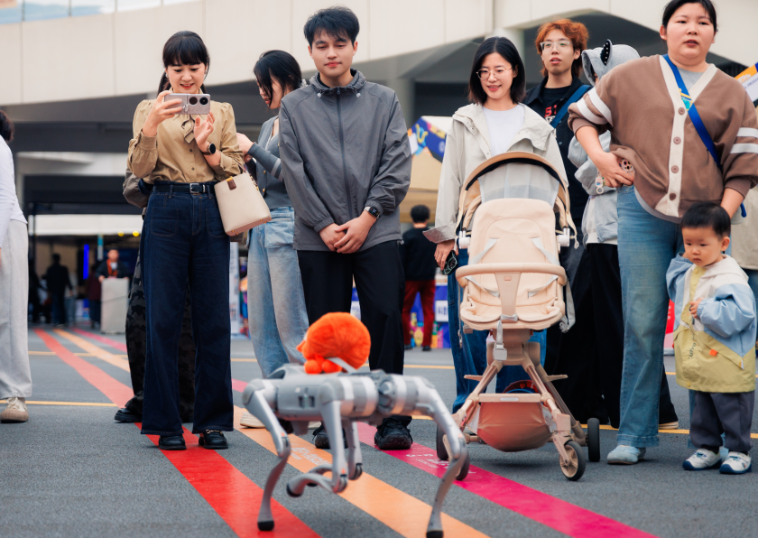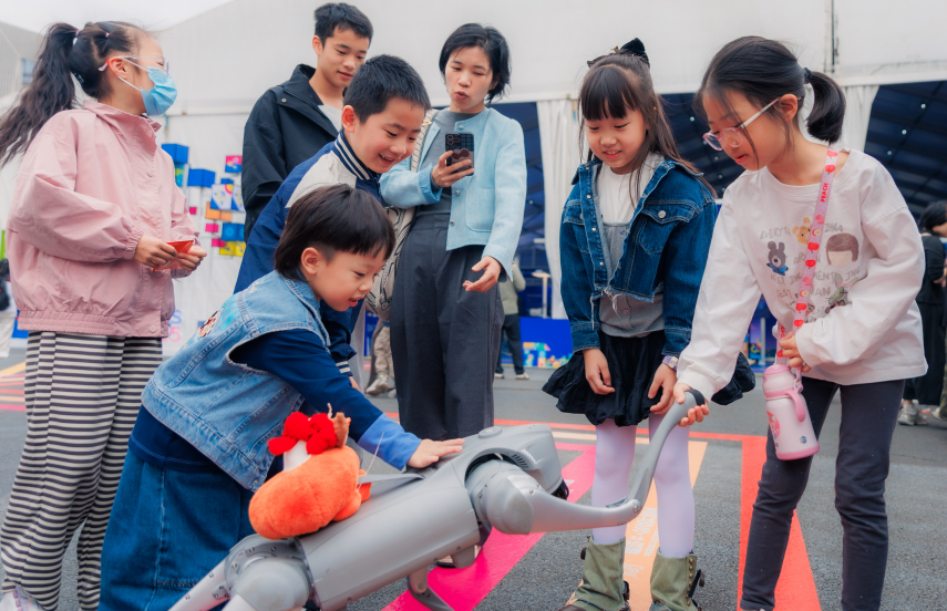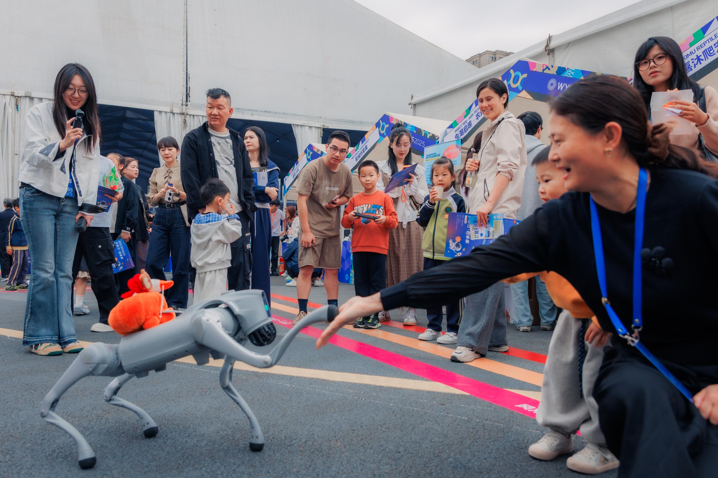在交流活动展示现场,数智技术学院数字农业研究所和solo设计工作室重点呈现“数字技术赋能农业新质生产力”成果与数智跨界应用。现场亮相的智能机器狗凭借互动性与科技感,迅速吸引绝大数人的目光,成为展区的“流量担当”。依托数字农业研究所的体系支撑,团队聚焦两大创新实践:一是以珊溪水利枢纽工程为样本,运用AI与沉浸式交互技术打造水利科普动画,获“学习强国”平台转播;二是为地方企业设计“金沙码头”IP,通过Z世代设计与OTO模式推动霞关非遗美食破圈传播,相关运营成效获农业农村部、财政部及浙江省“头雁”项目推荐。