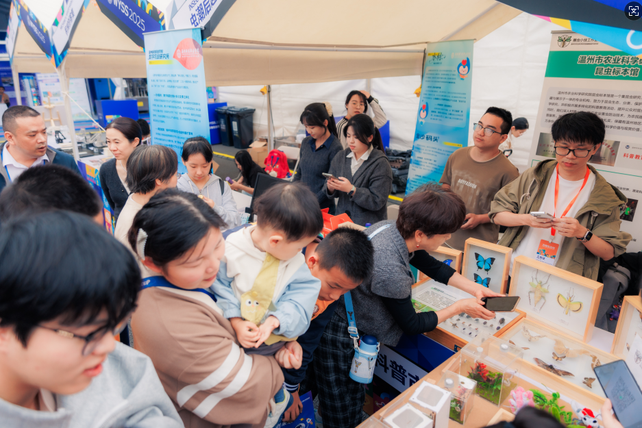 农业与生物技术学院的科研成果同样彰显硬实力。展会现场,植物保护团队凭借精心筹备的昆虫标本和活虫迅速聚拢人气,党员骨干还同步为观众讲解昆虫背后的科学知识,让科普服务更显温度。依托团队建设的温州市农业科学研究院昆虫标本馆,科研人员一边系统开展昆虫生态、分类、保护及利用等领域的科学研究,一边通过主题展览、趣味讲座开展科普教育,既为生物多样性保护筑牢数据根基,也为公众点燃了科学探索的兴趣,实现了科研“硬支撑”与科普“软触达”的完美结合。