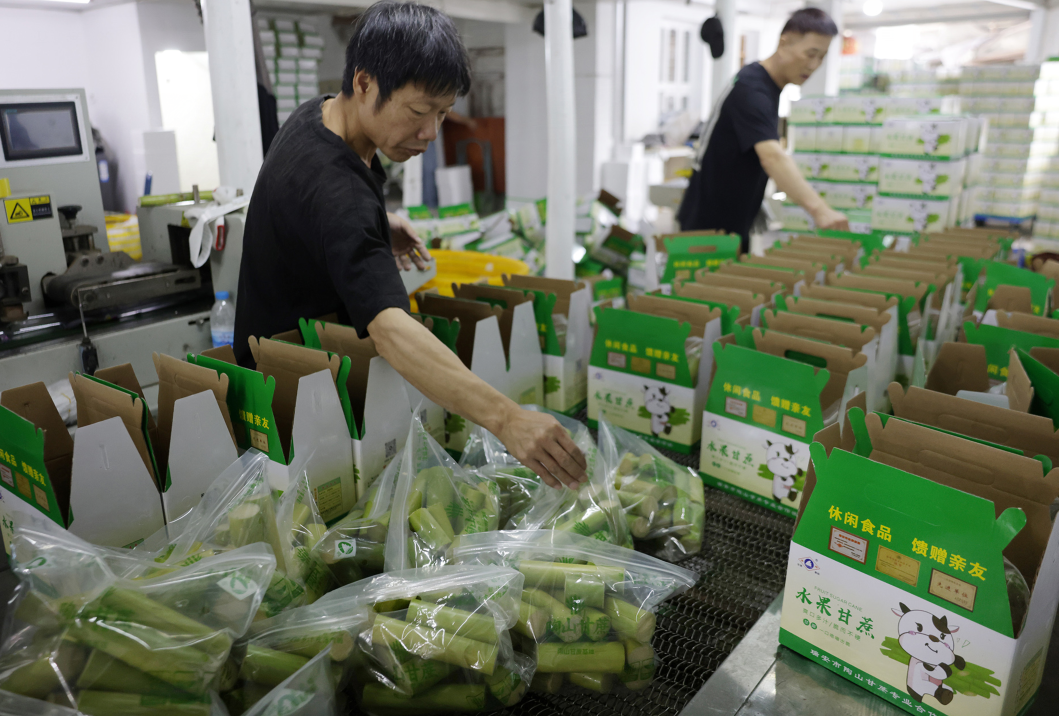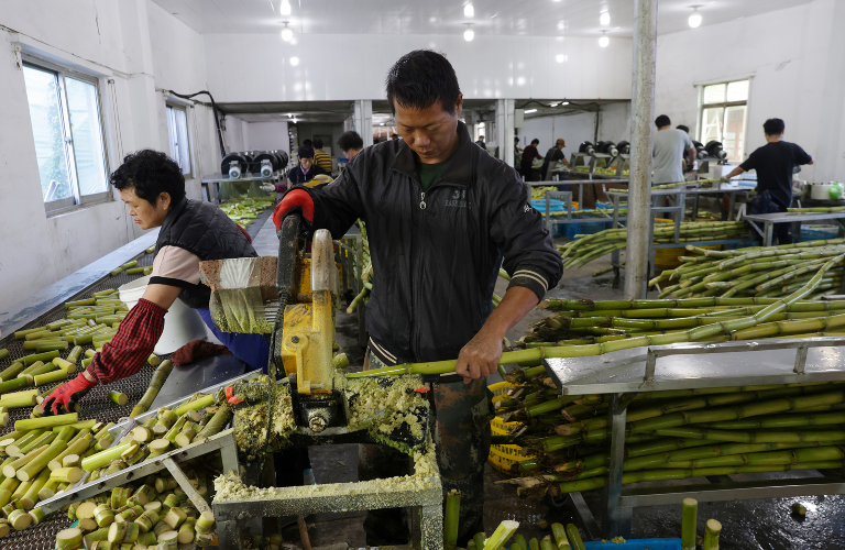 新鲜收割的甘蔗被直接运往附近的瑞安市前途果蔬专业合作社,在这里经过清洗、切段、吹干、包装等一系列标准化处理后打包发货,第一时间发给全国各地的客户,实现收割当天“现摘现售”。