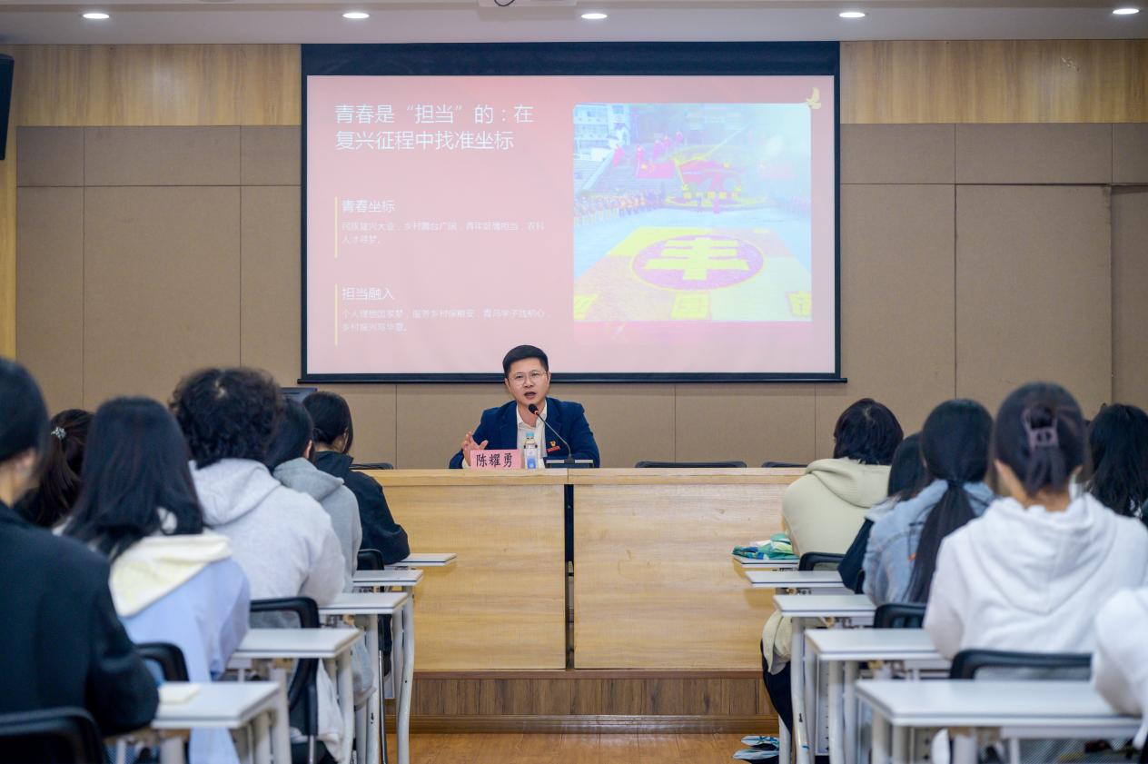理论授课环节,温科院农生学院党总支书记陈耀勇围绕“在希望的田野上书写青春华章”主题,结合学院“双高计划”建设单位、“全国高校黄大年式教师团队”等发展成果,阐述了农生学子服务国家战略的责任与机遇。通过学子技能大赛夺金、社会实践服务等鲜活事例,激励学员以“硬核”本领、深厚情怀和坚定担当,在农业农村现代化建设中找准定位。