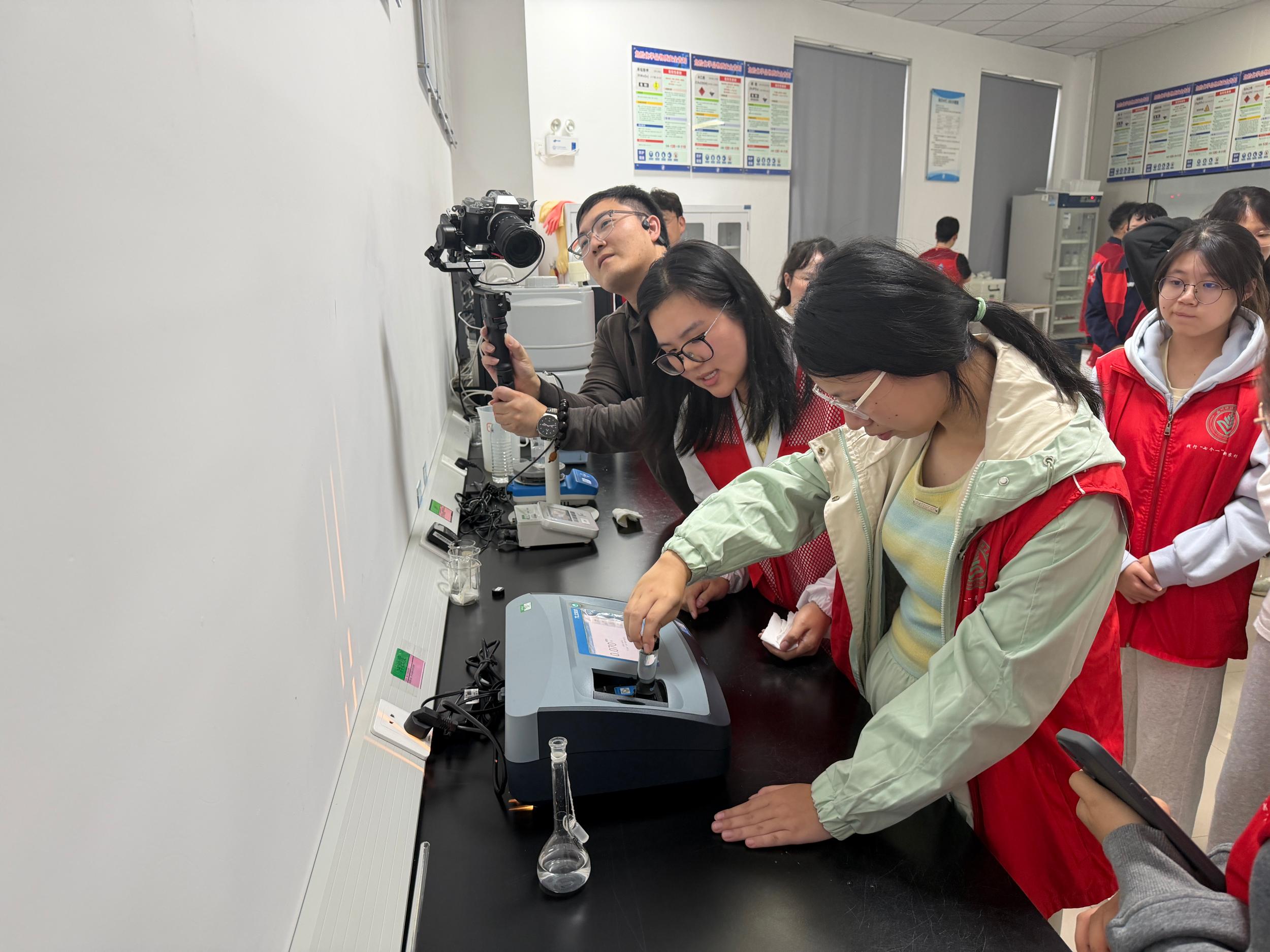 石鼓山水厂是“清水到家”的关键环节,承担着水质净化的重要使命。在水厂水质检测中心,学生们近距离观摩了精密仪器运转,见证了技术人员对水质指标的严谨分析过程。原水需经过混凝、沉淀、过滤、消毒四道核心工艺处理,同时通过十项关键指标的严格核验,才能成为合格成品水,一道道严谨工序为市民饮水安全筑牢了最后一道防线。