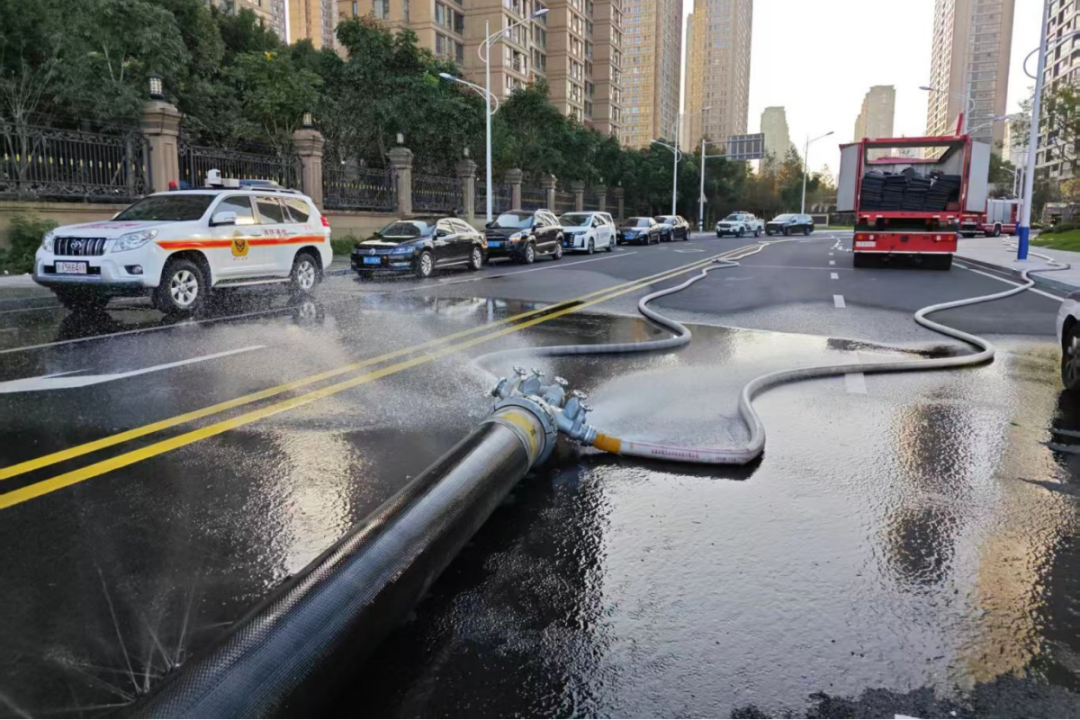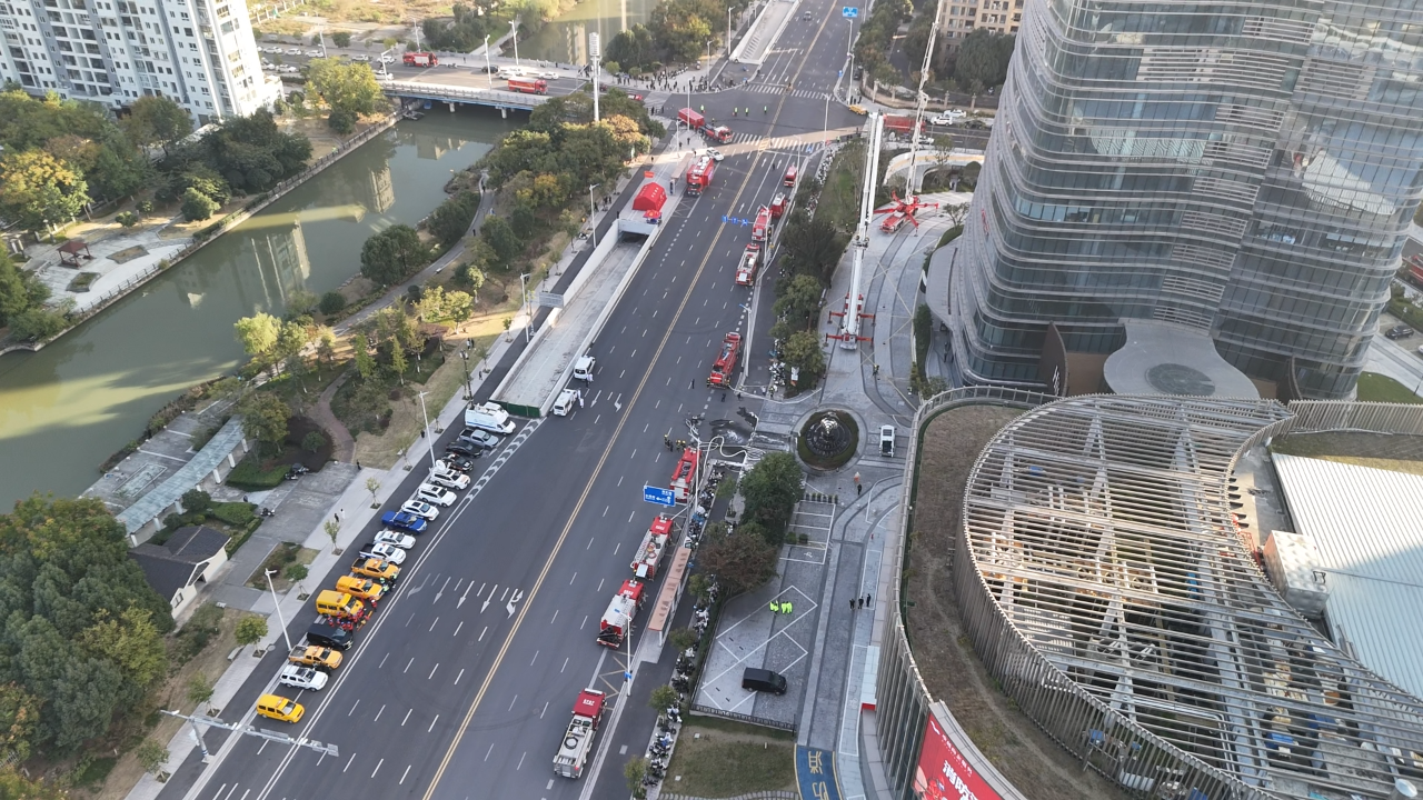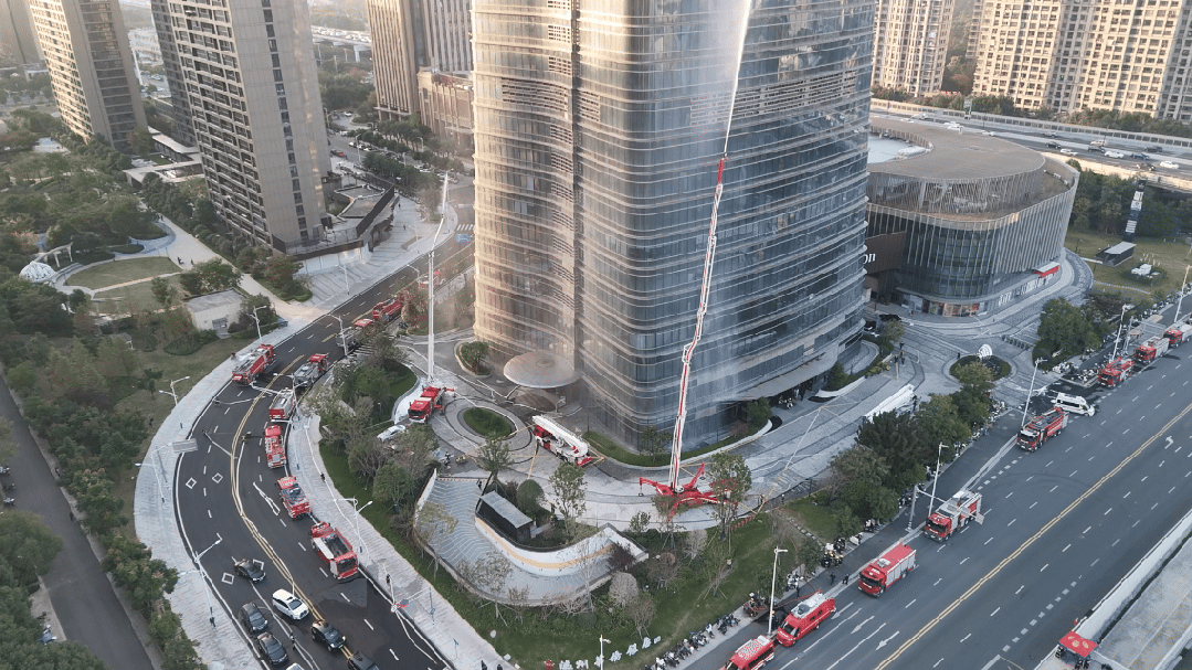 在实战中测试90米云梯车、48米高喷车超高层外围控火能力掌握有效供水压力和最大扑救高度