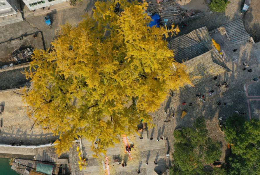 12月2日,永嘉县大若岩镇银泉村,420多岁的“银杏王”满树金黄,迎来了最佳观赏期,引来了众多游客前来观光、打卡,一幅美好的乡村风景跃然眼前。